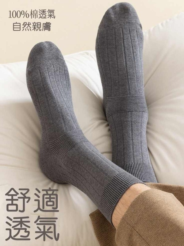 秋冬男雙針純棉無骨透氣棉襪