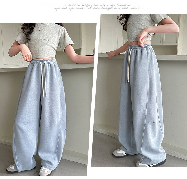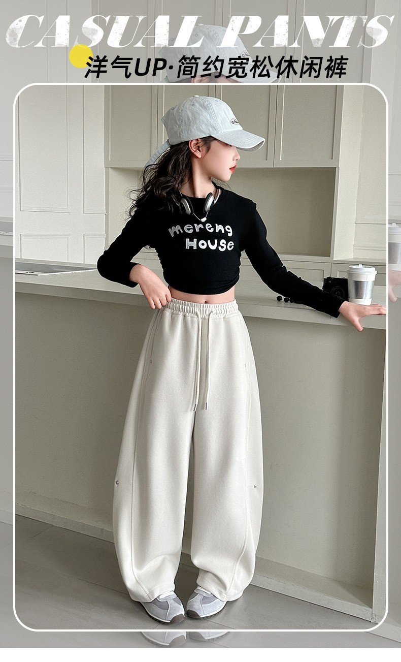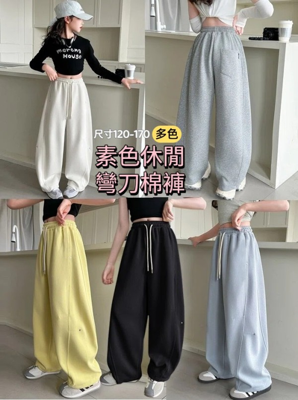 DJU25072中大女童素色休閒彎刀棉褲