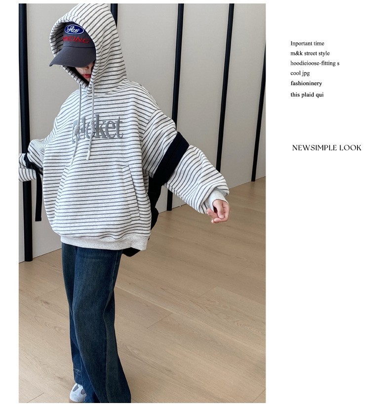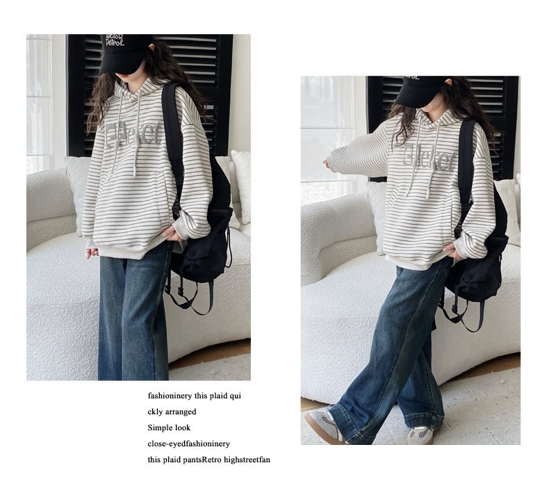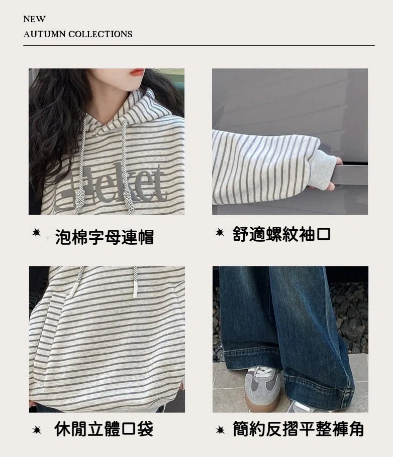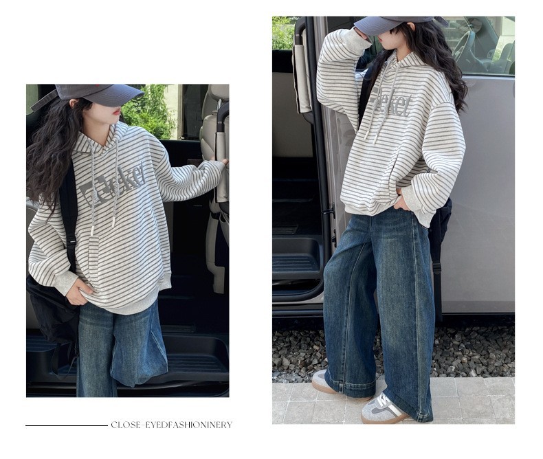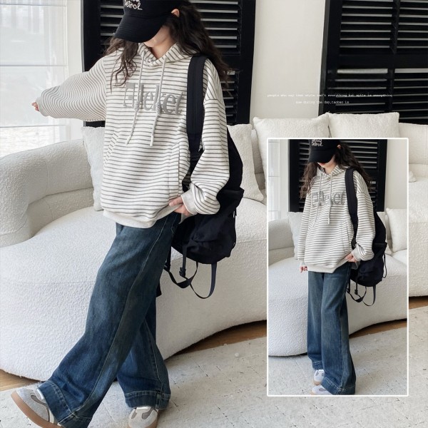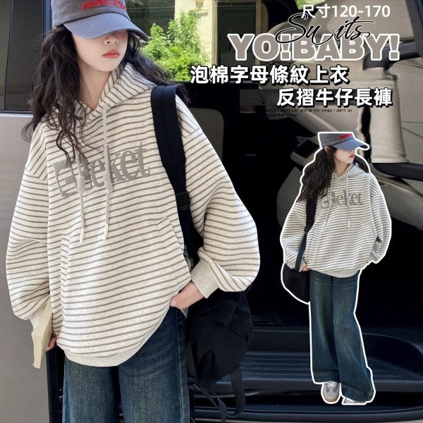 DJU208中大童泡棉字母立體口袋條紋上衣&反摺牛仔長褲