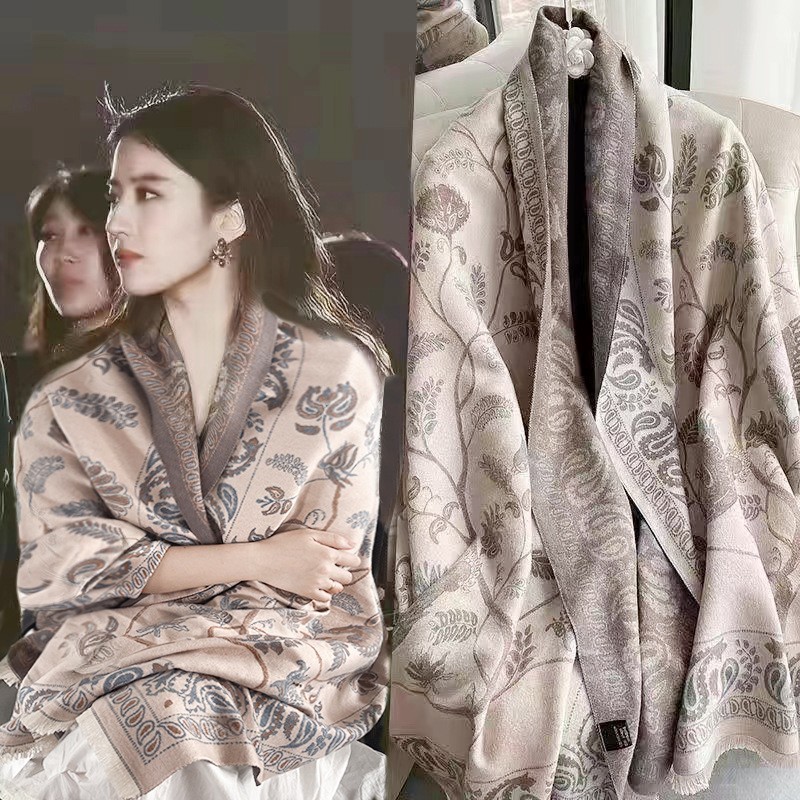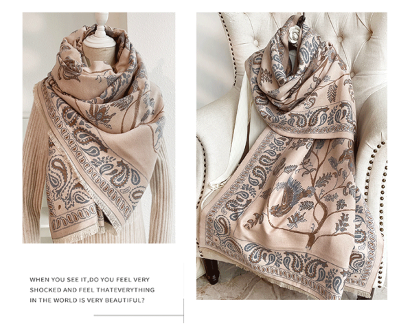 青鳥圖仿羊絨圍巾保暖披肩