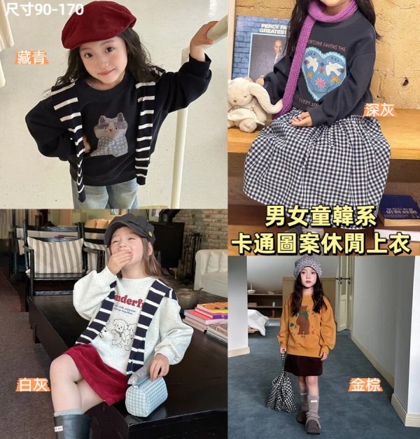 DKG25053男女童韓系卡通圖案休閒上衣
