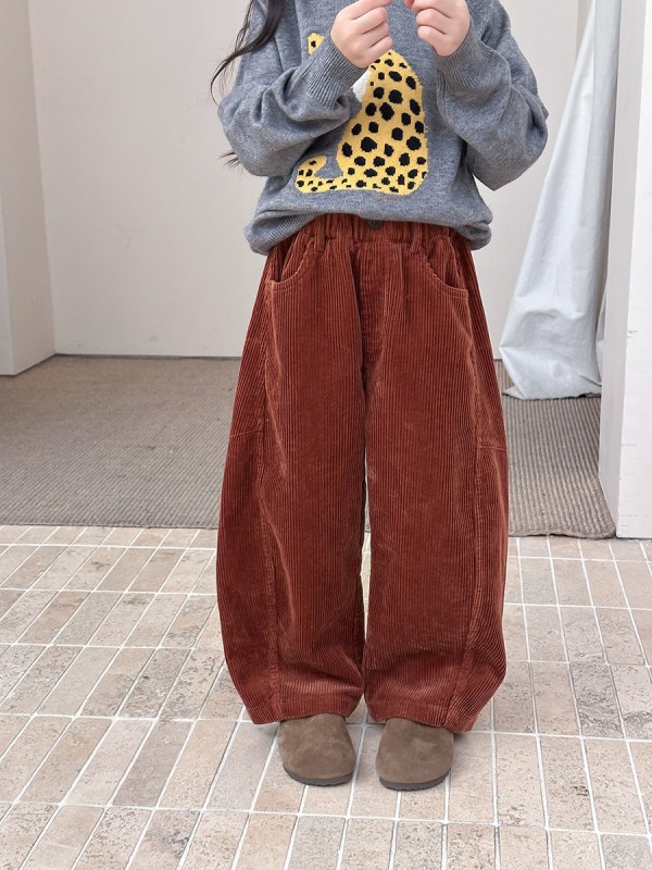 DKG25087童裝冬款燈心絨寬鬆休閒褲