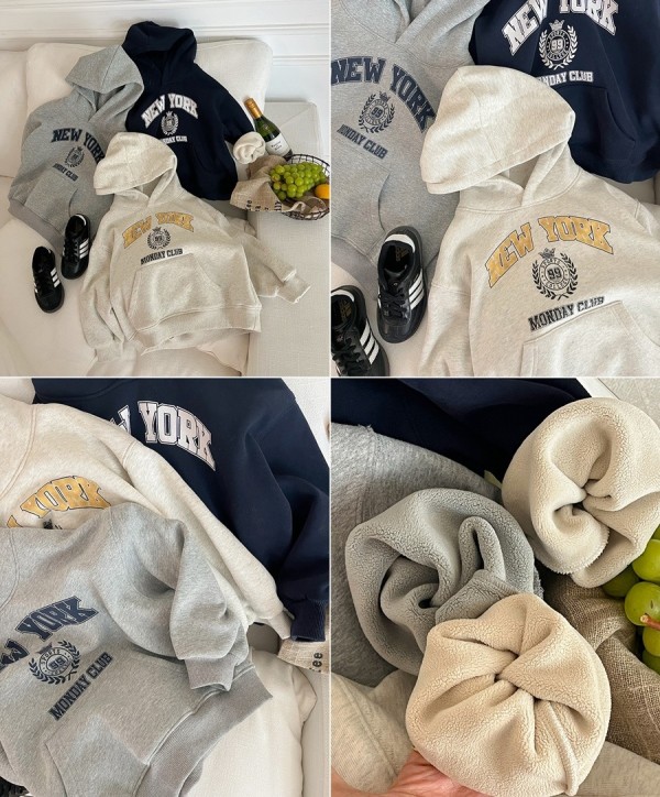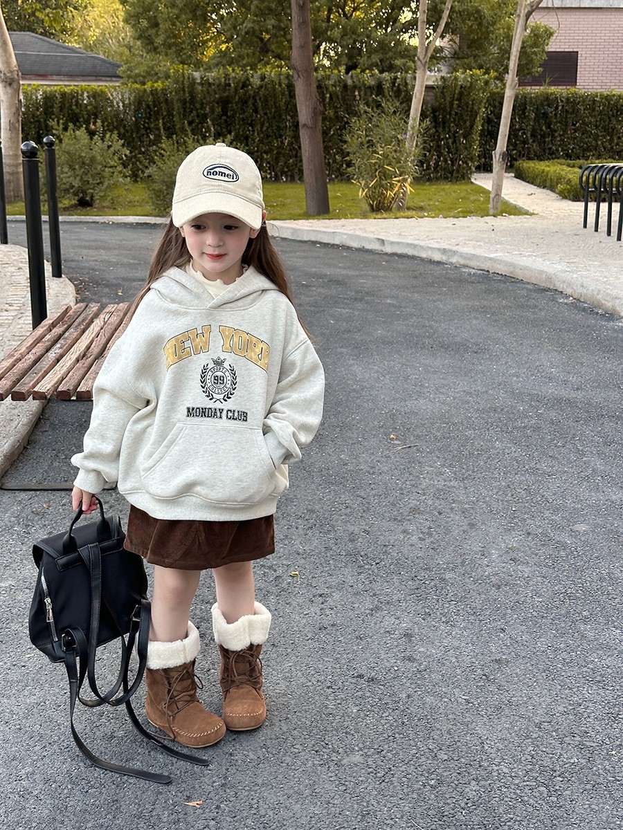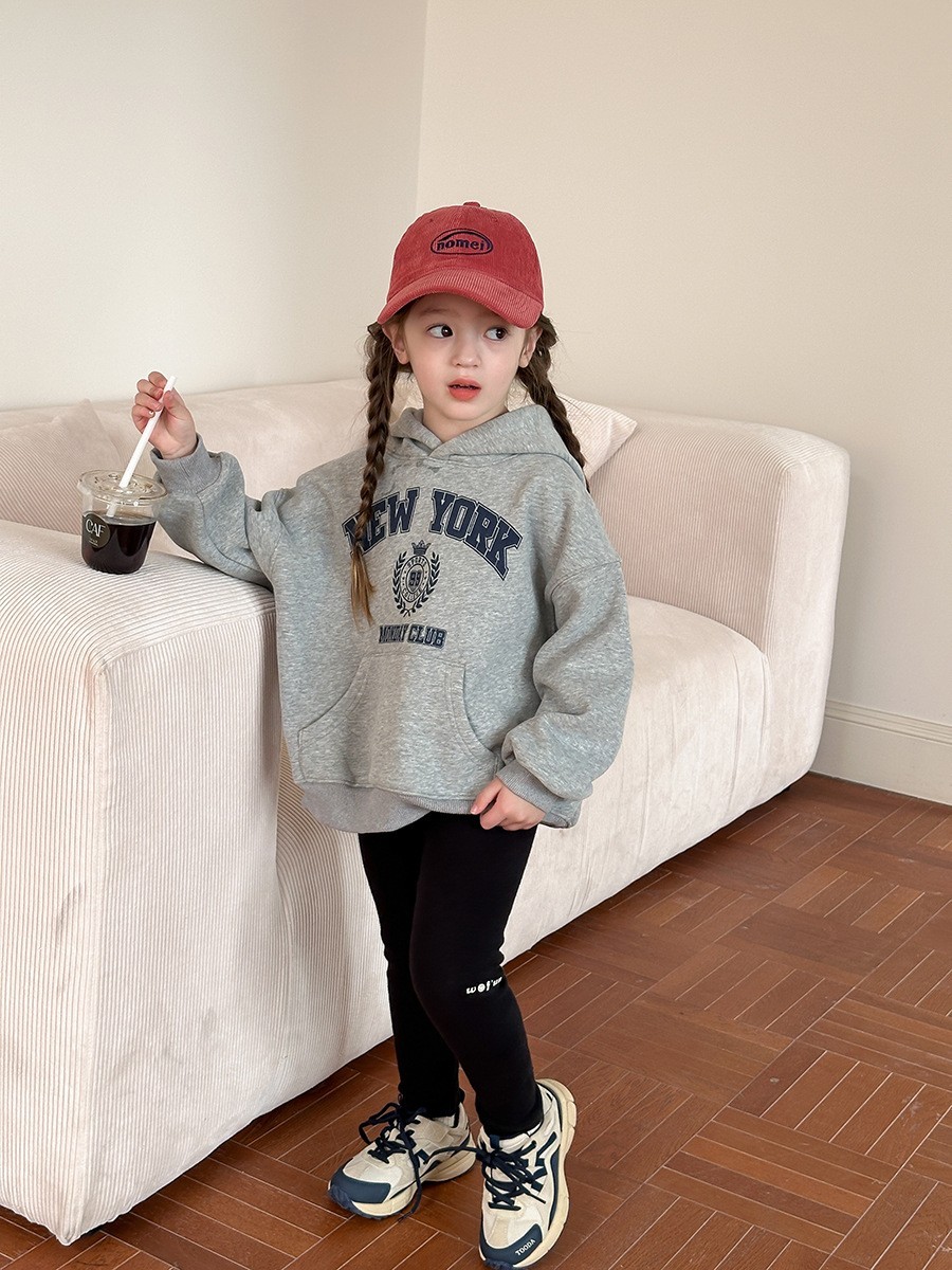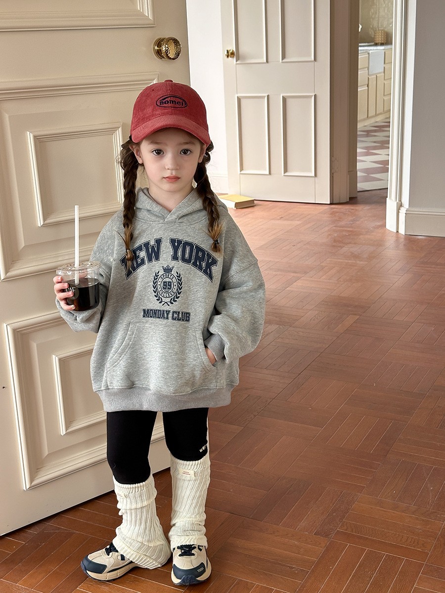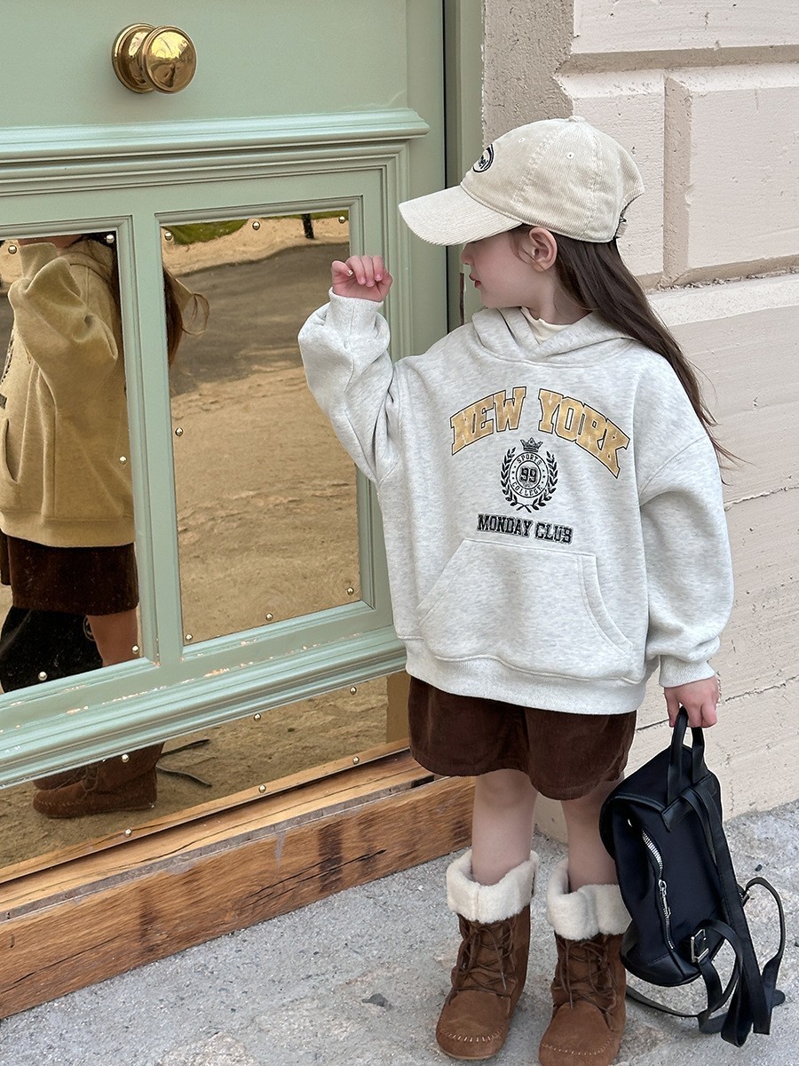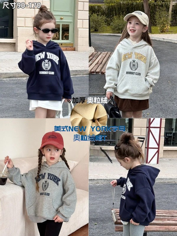 DKG24036男女童美式NEW YORK字母奧粒絨帽T