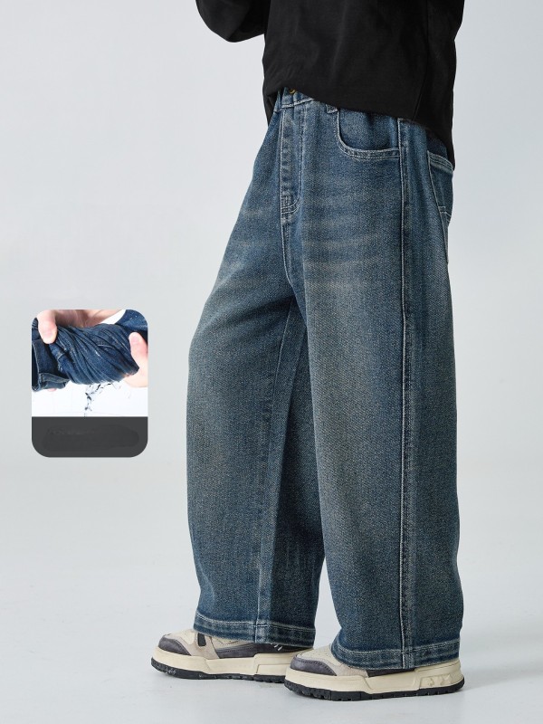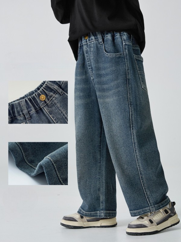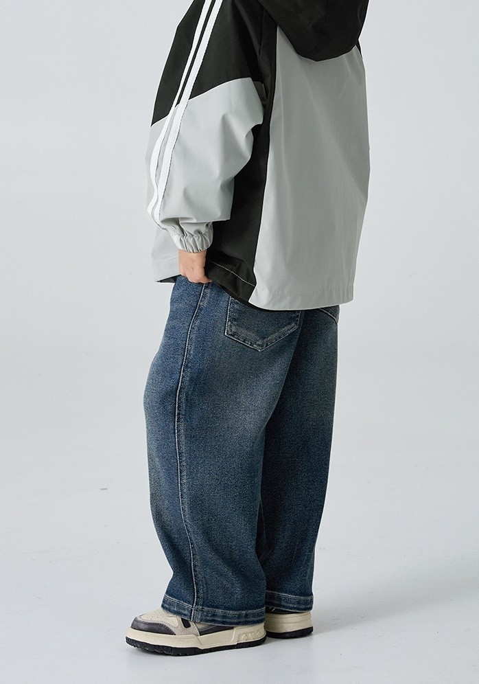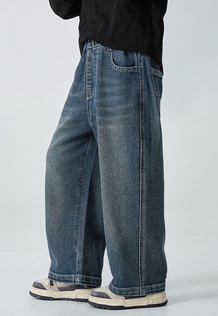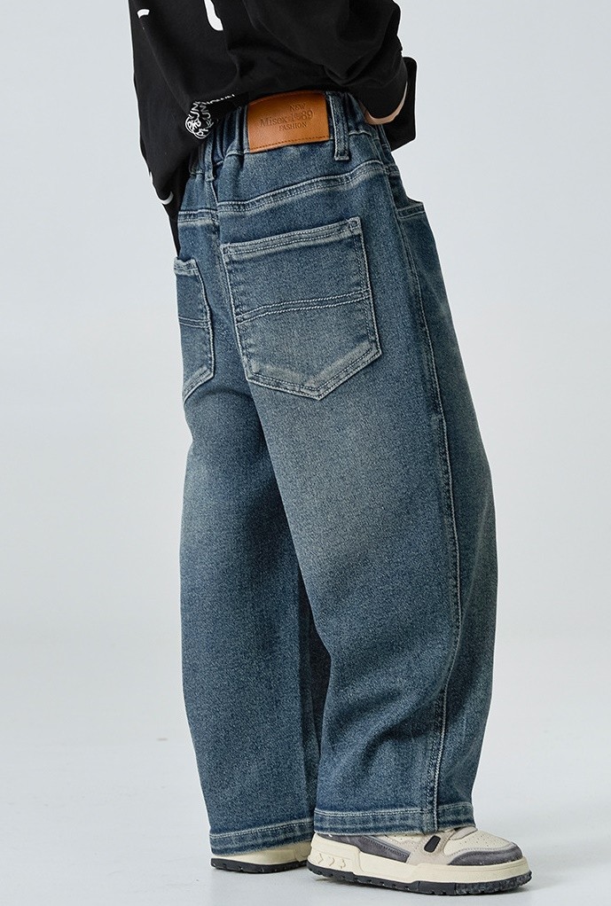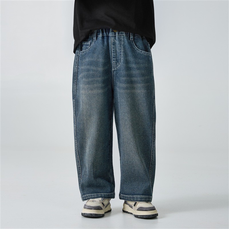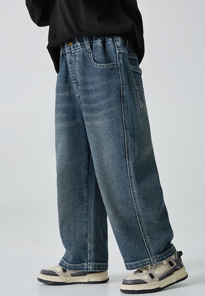 DHM2509中大童復古水洗寬鬆擴腿牛仔褲