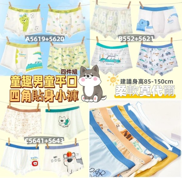 童趣男童平口四角貼身小褲(4件1組)