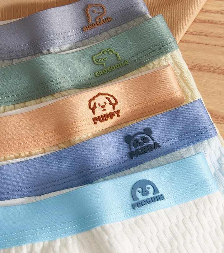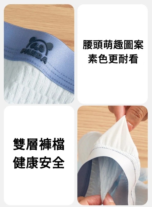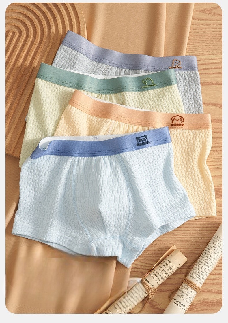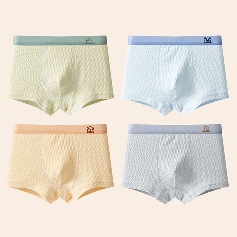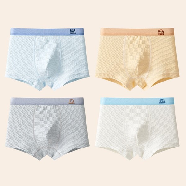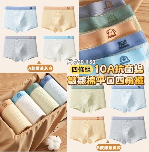 皺皺棉腰頭動物素色平口四角褲(4件1組)