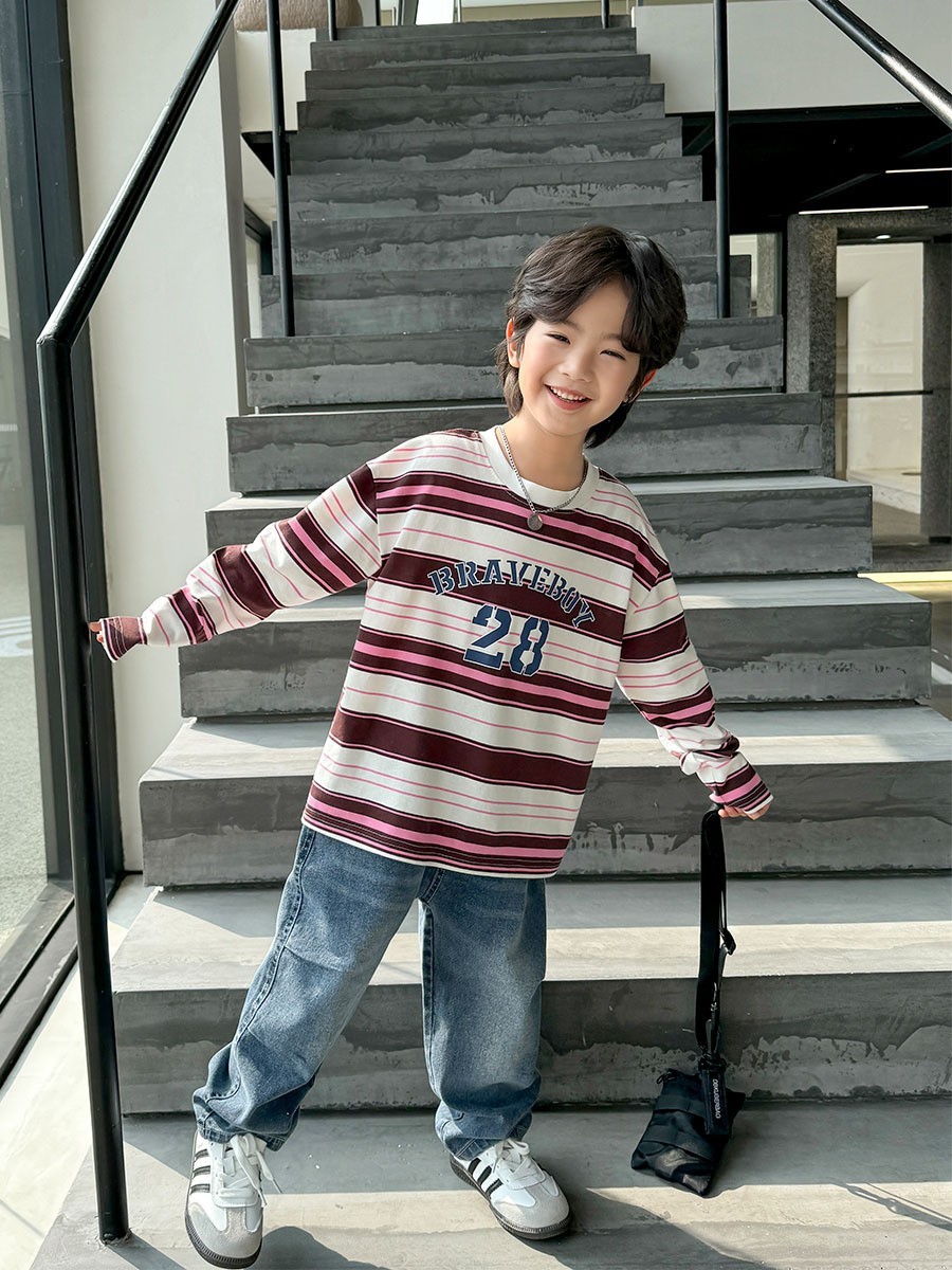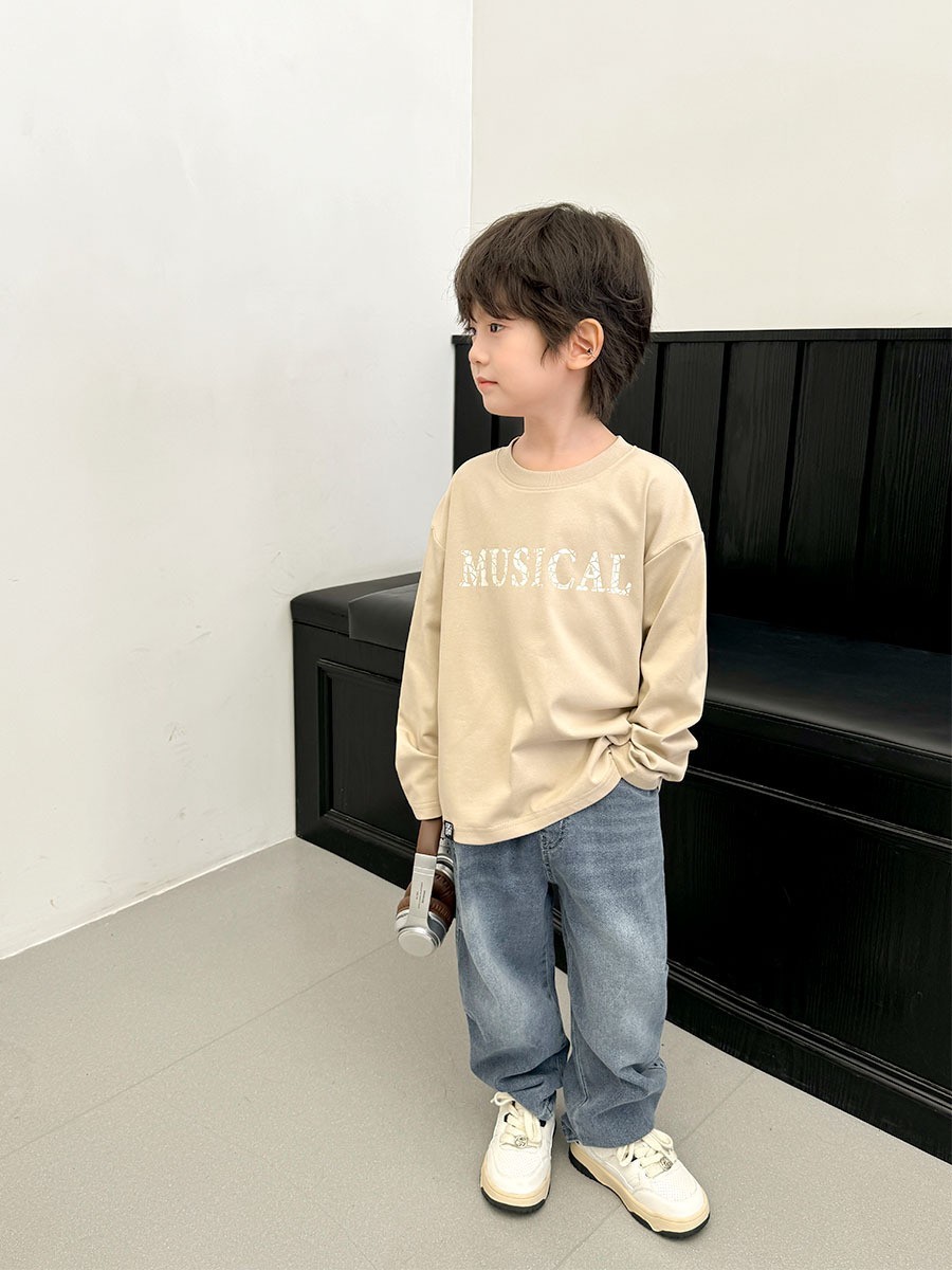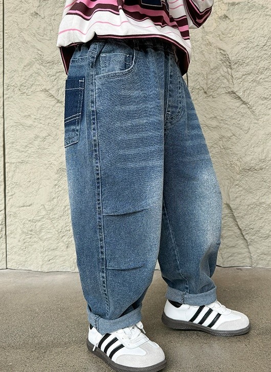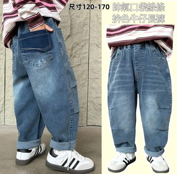 DHM2417中大童帥氣口袋線條拚色牛仔長褲