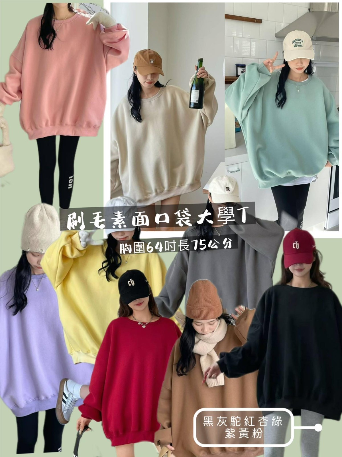 黑 灰 駝 紅 杏 綠 紫 黃 粉