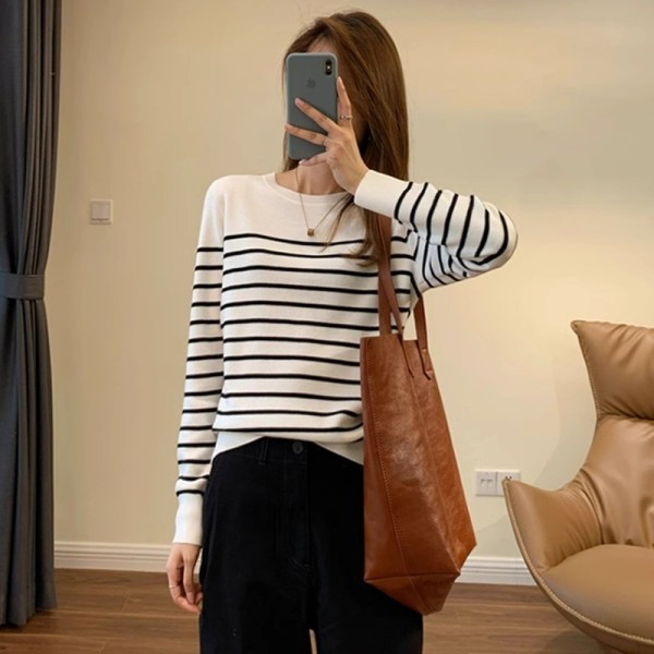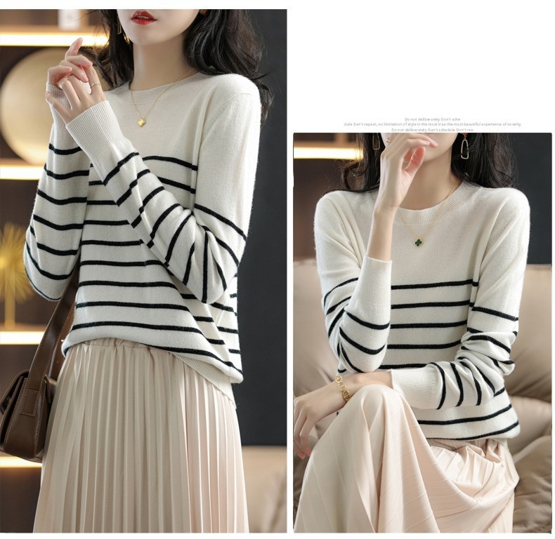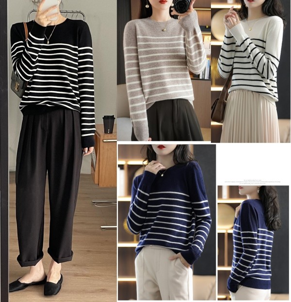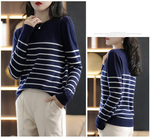 DMY257女裝羊混紡簡約條紋圓領針織衫