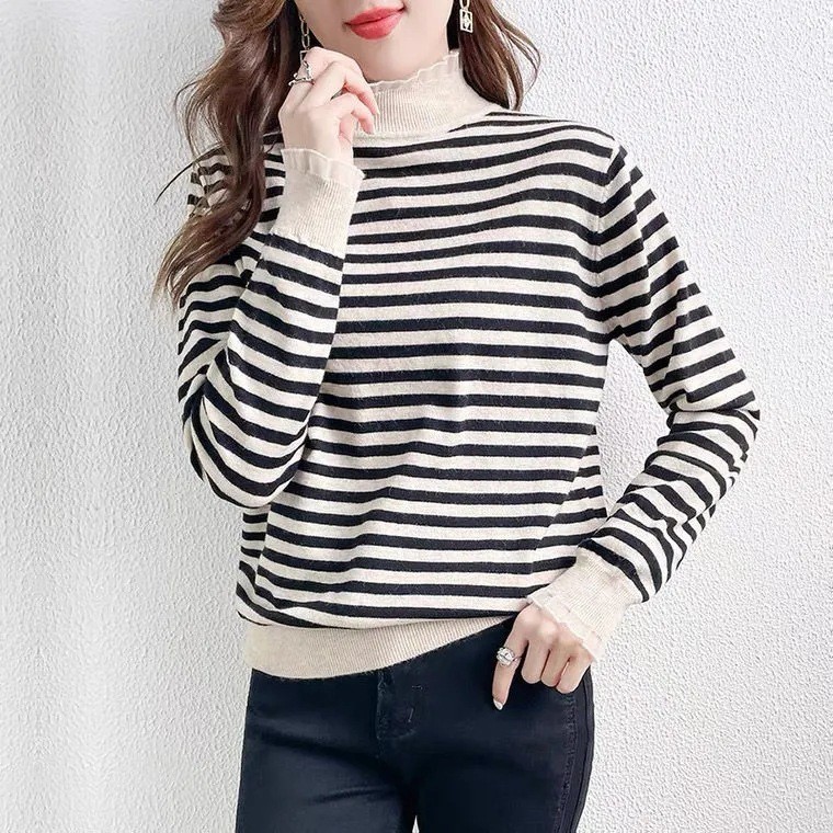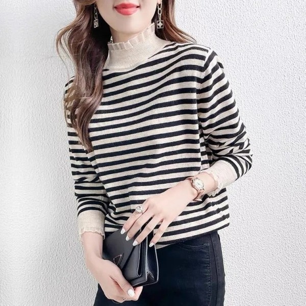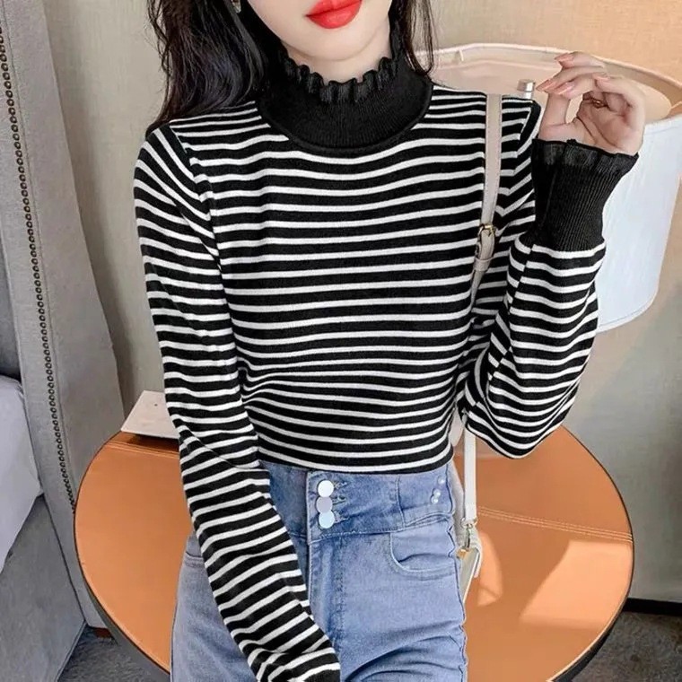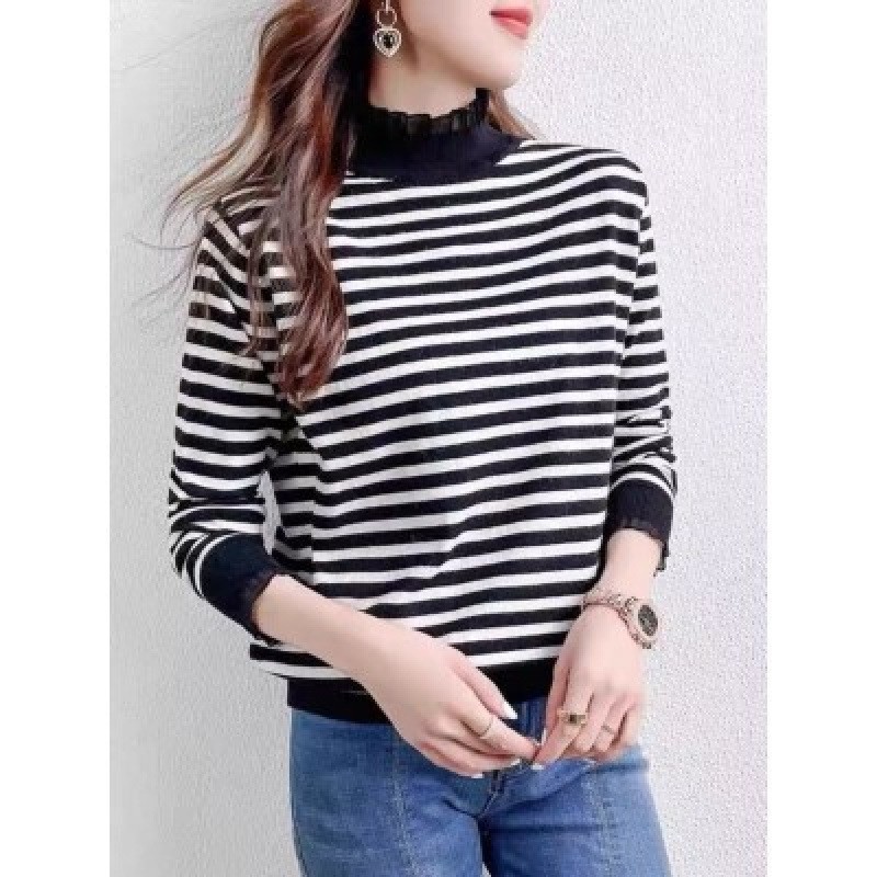 DMY111女裝半高木耳領袖袖甜美條紋上衣