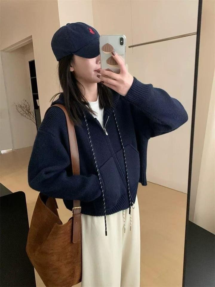 短版針織外套比較少見,