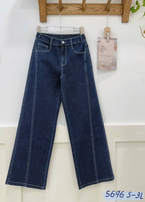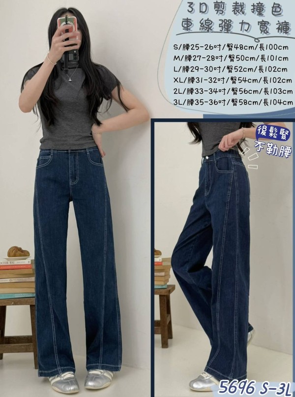 WCH5696 前釦拉鍊3D剪裁撞色車線彈力寬褲」
