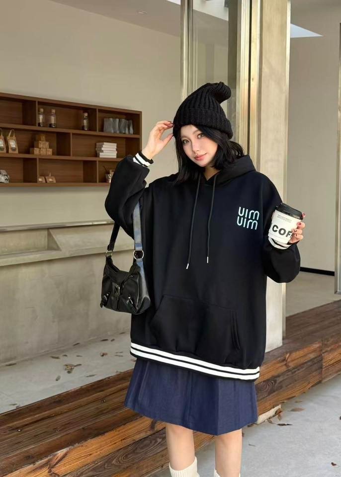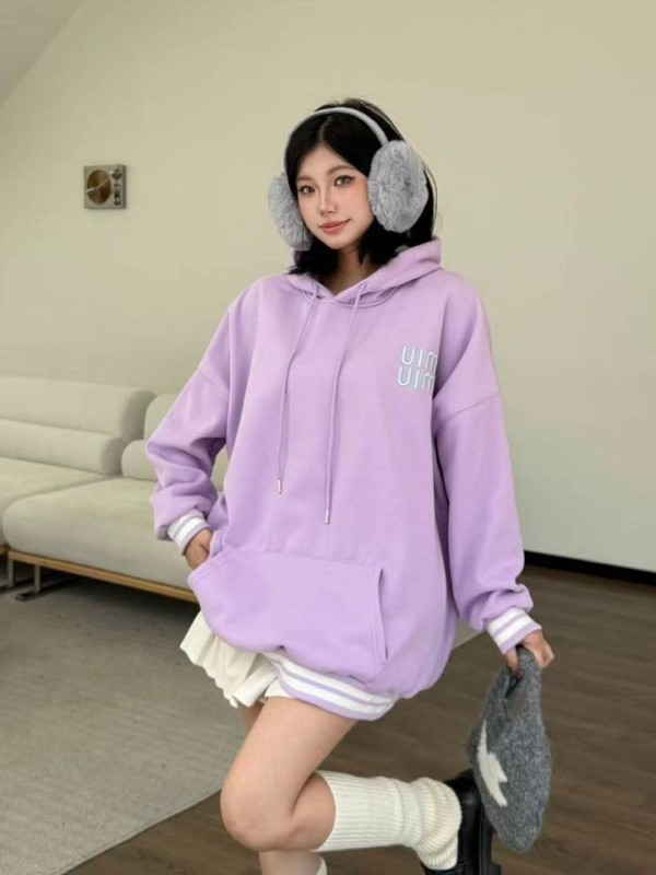 WJJ30255韓加絨電繡UIM 雙層連帽上衣