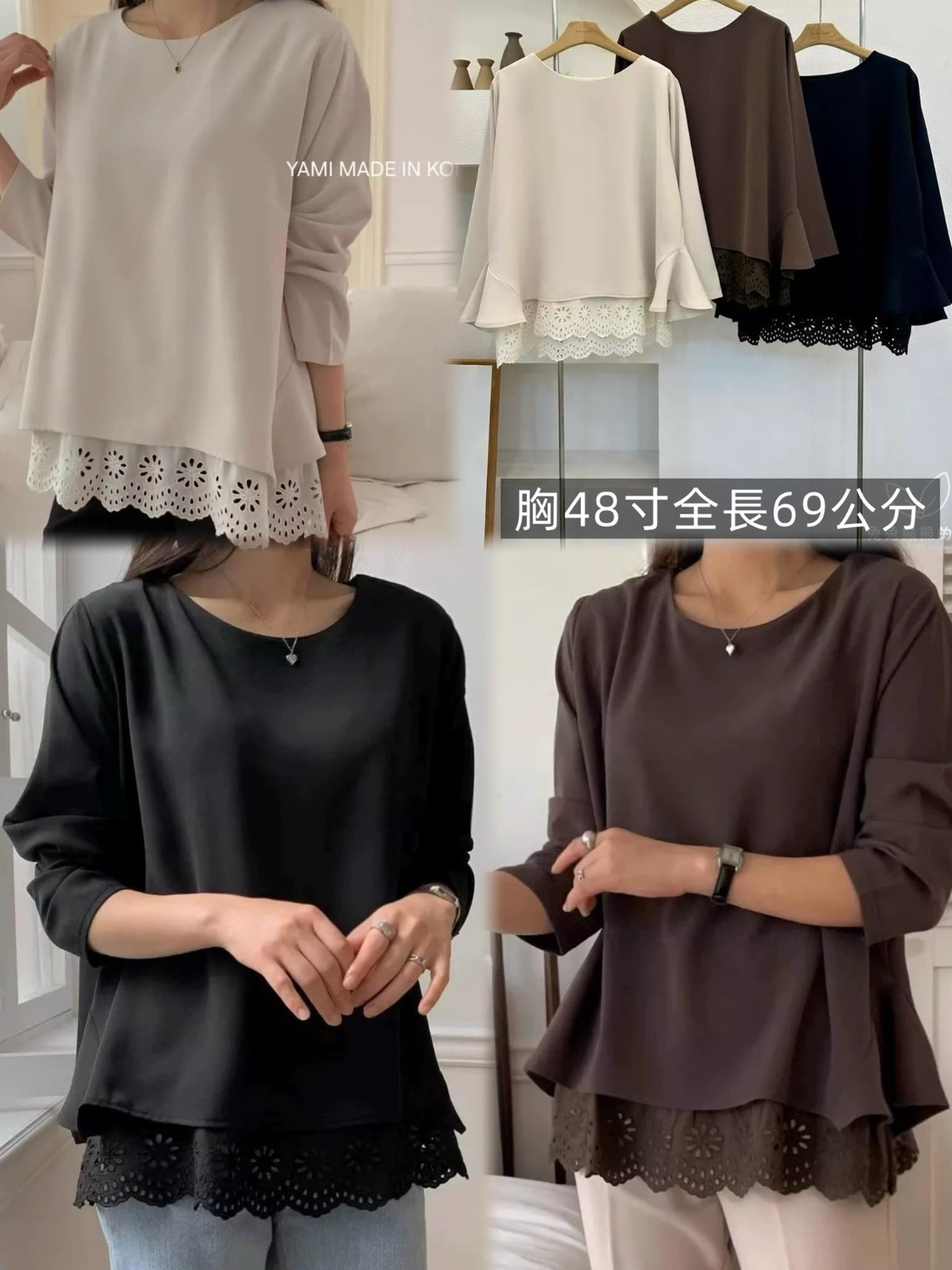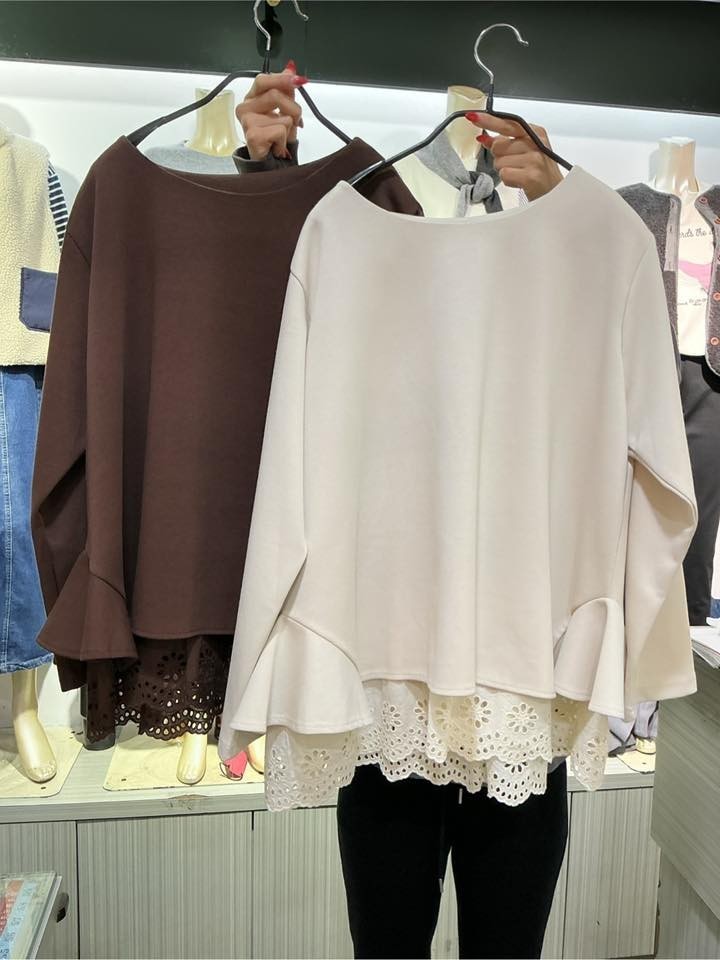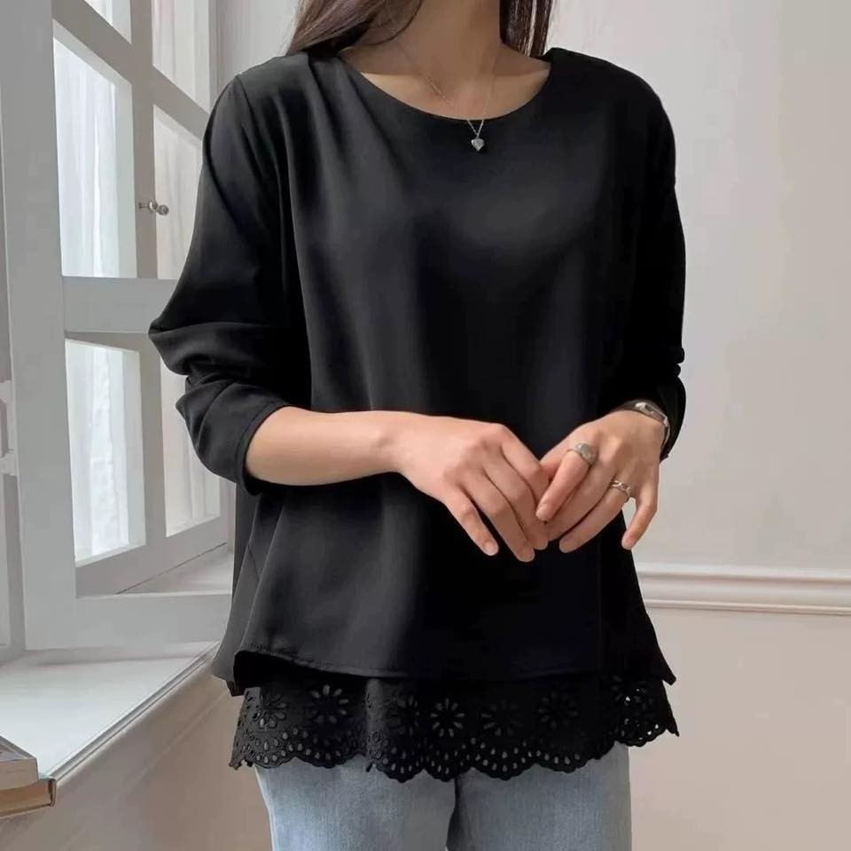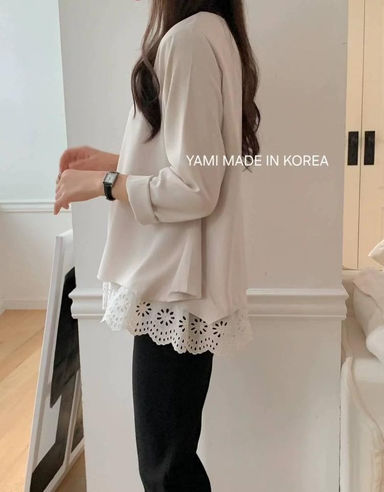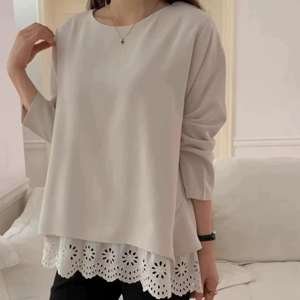 👚WKS6638韓版簡約優雅下拼接燒花長上衣