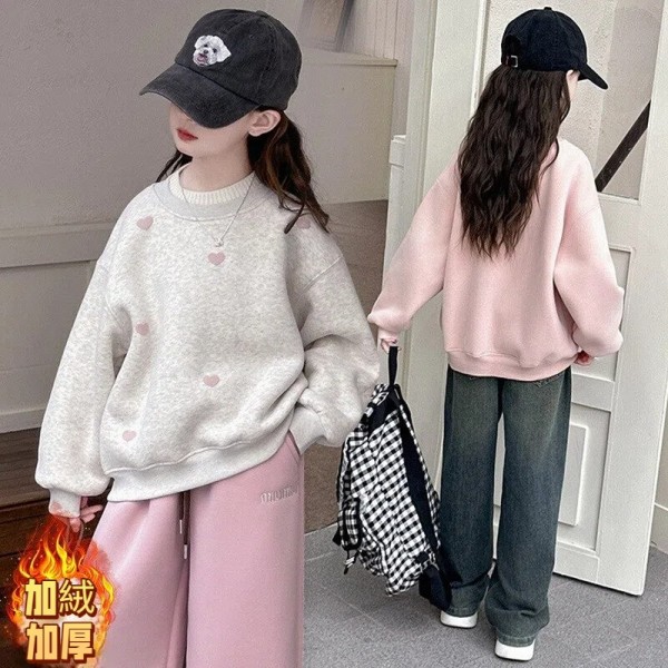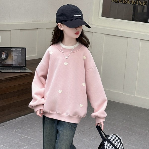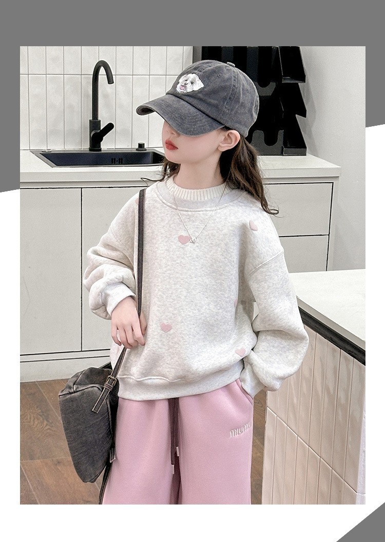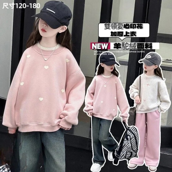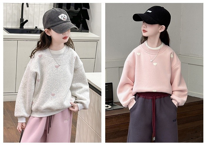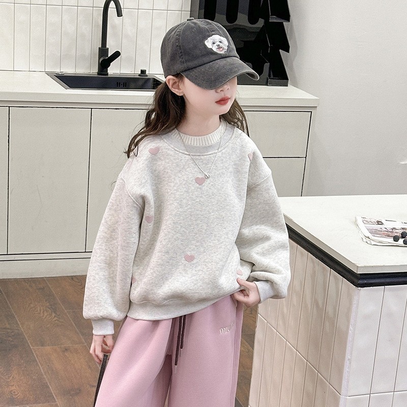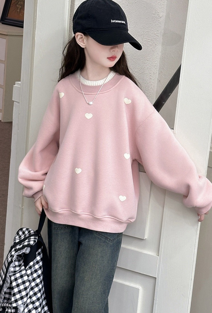 DJU955中大童雙領愛心印花加厚上衣