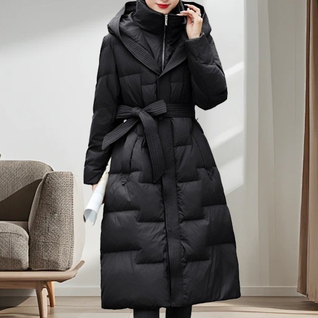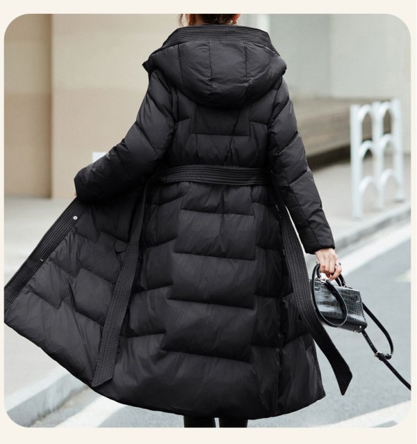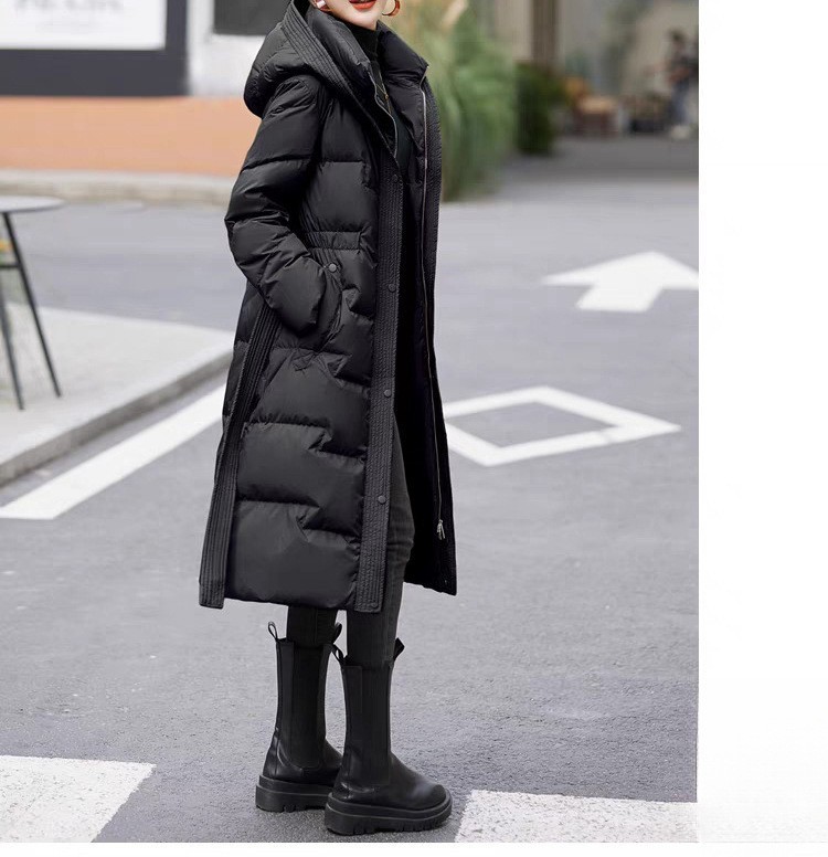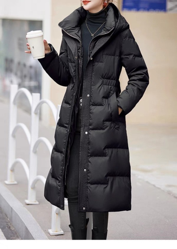 DUD8092黑色長版縮腰顯瘦過膝羽絨外套