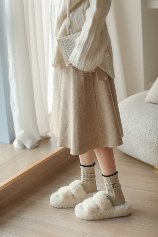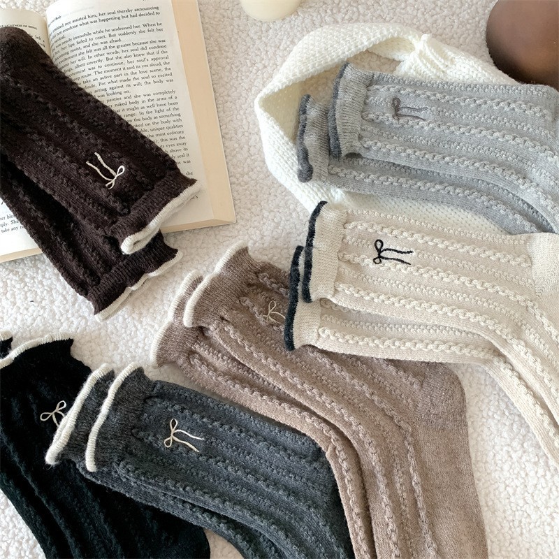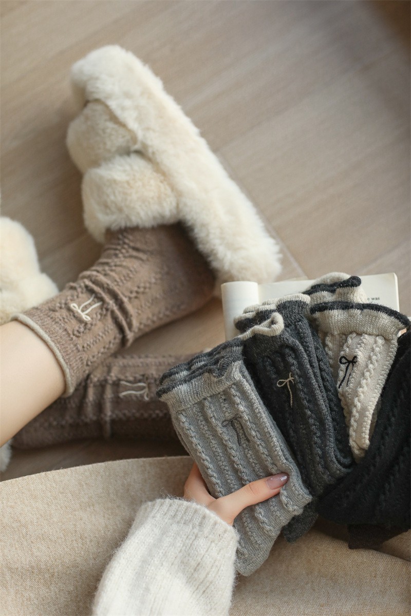 女DL2492女蝴蝶結優雅麻花織紋保暖羊毛襪