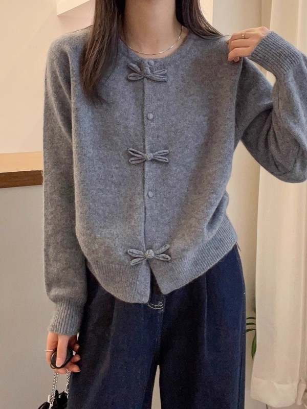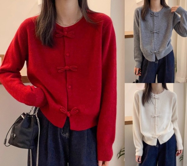 DAE33371女裝典雅盤扣開衫圓領針織上衣