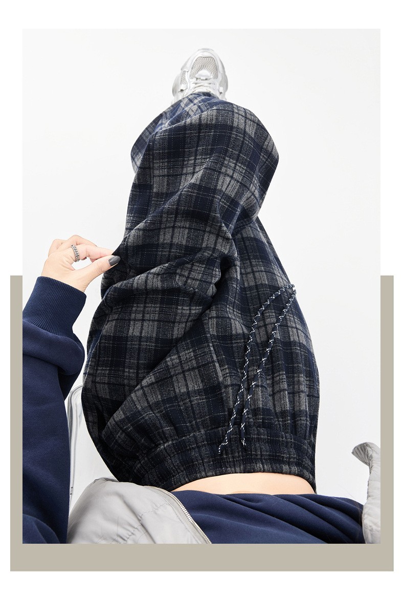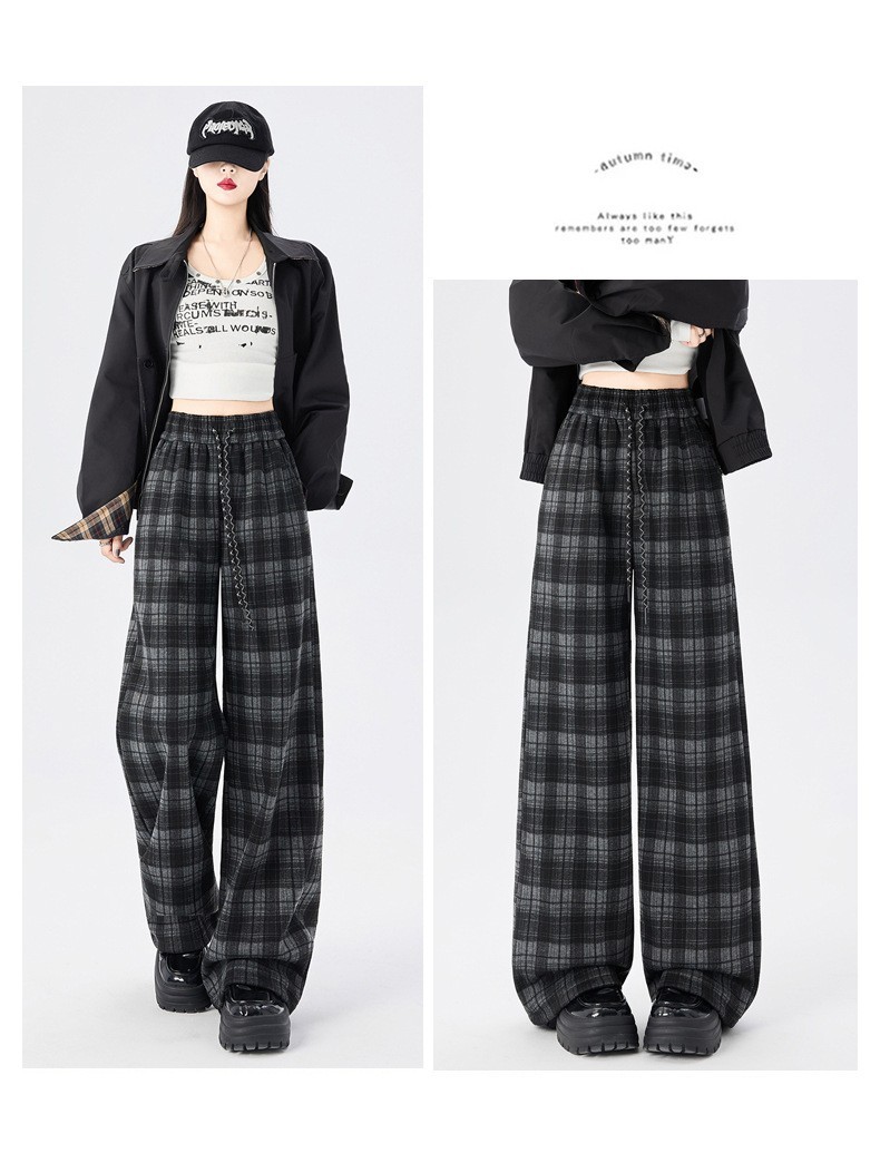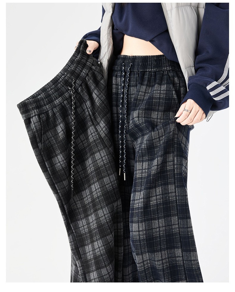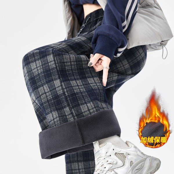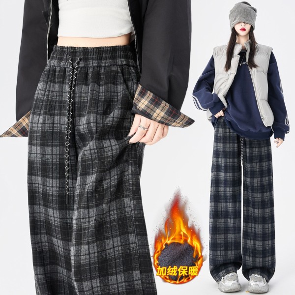 DND7295女裝保暖內加絨毛尼四線格紋寬褲