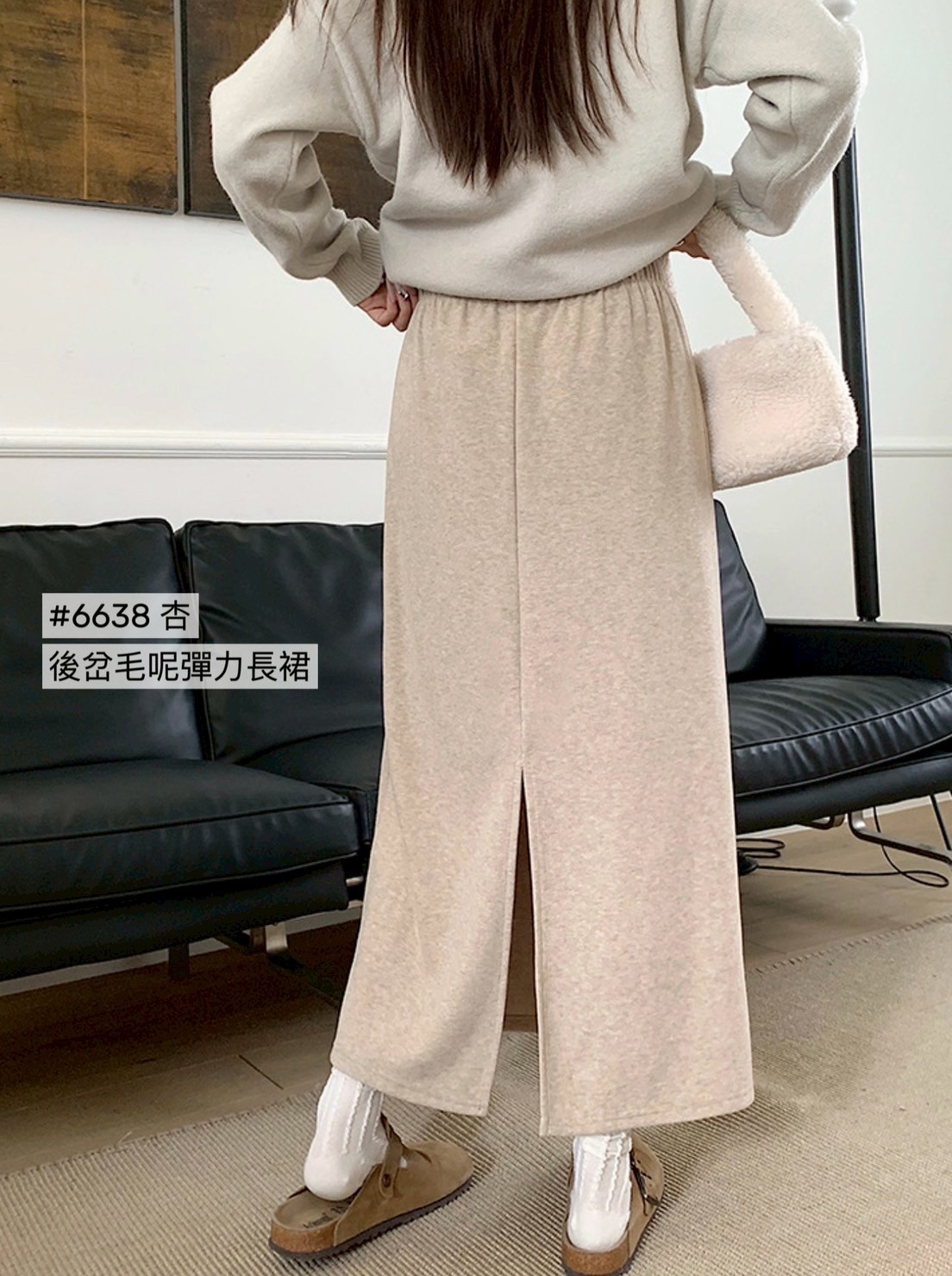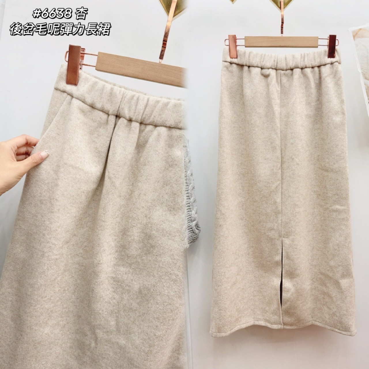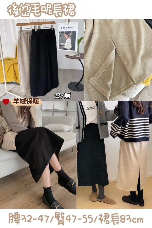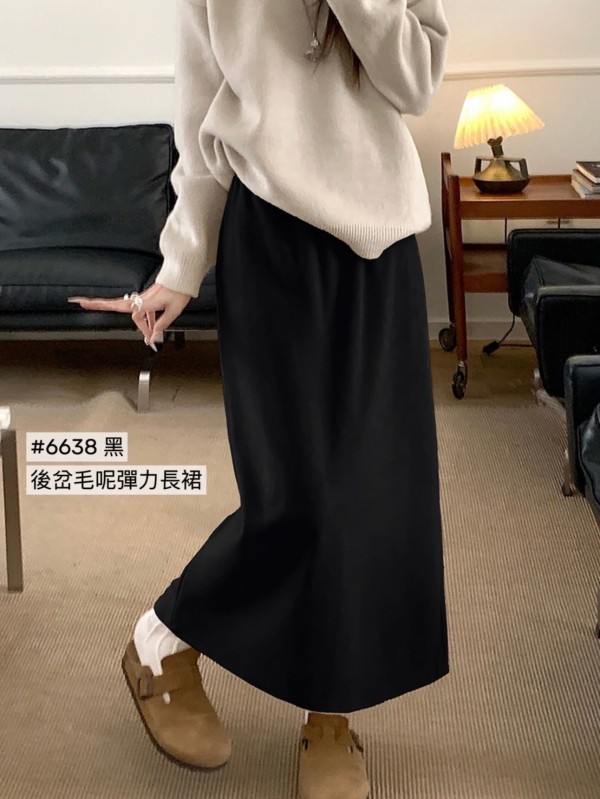WGW6638女裝後岔毛呢長裙