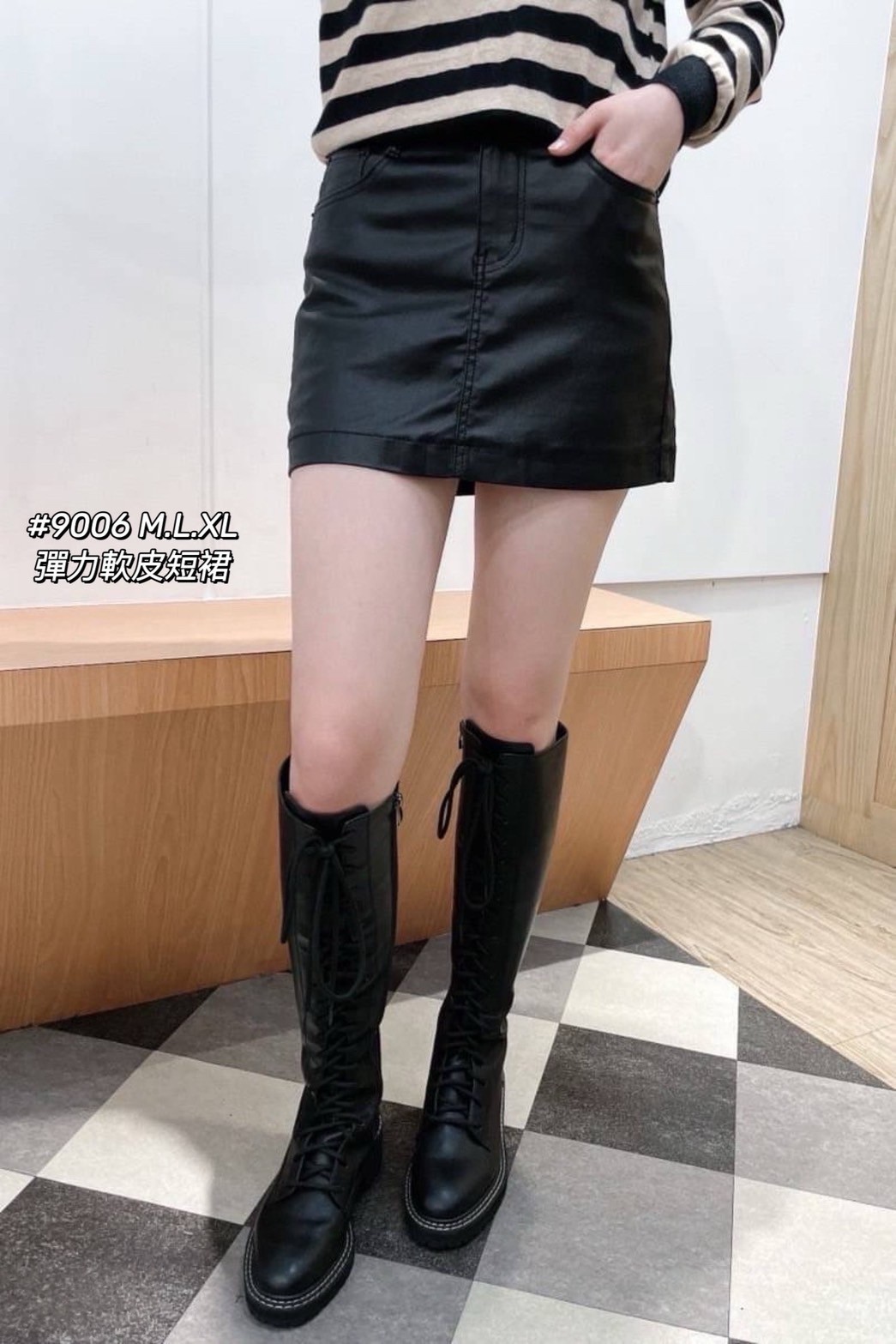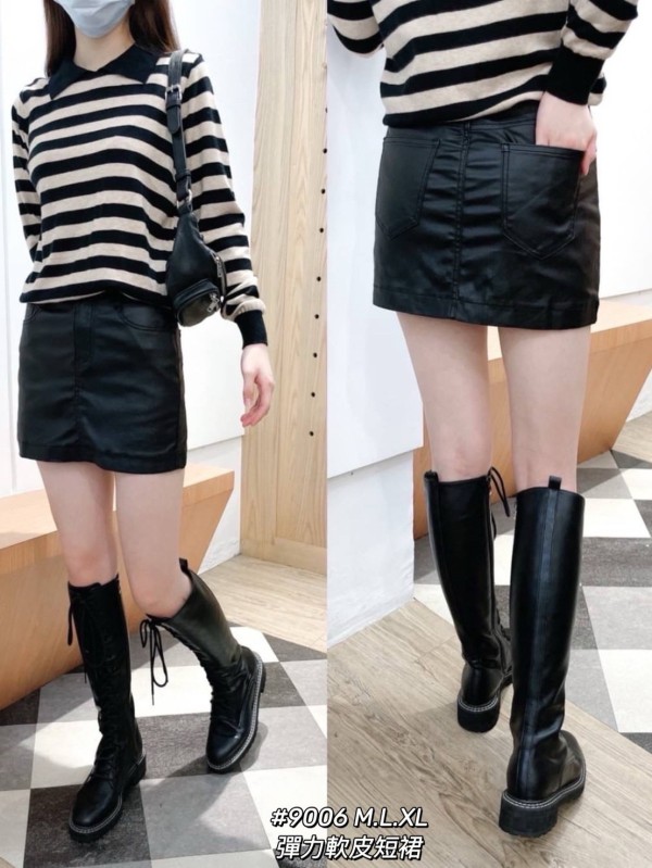 WGW9006女裝彈力A字皮短裙