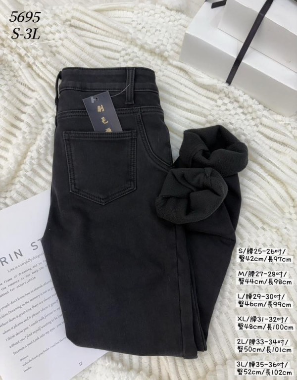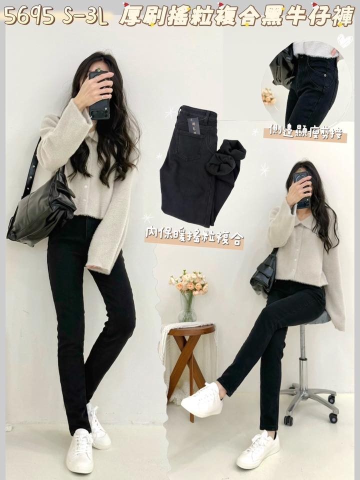WCH5695 女裝厚刷搖粒複合黑牛仔褲