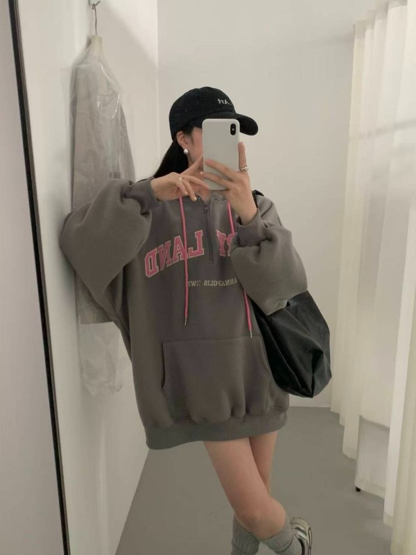 刷毛電繡英文帽T
