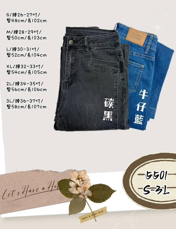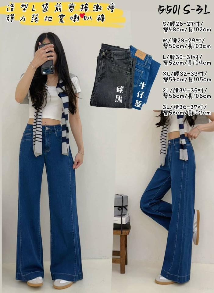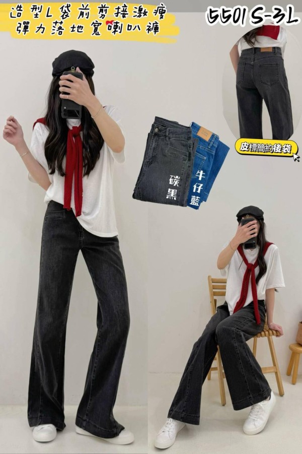 5501 S-3L 前釦拉鍊L袋激瘦剪裁落地寬喇叭 ]