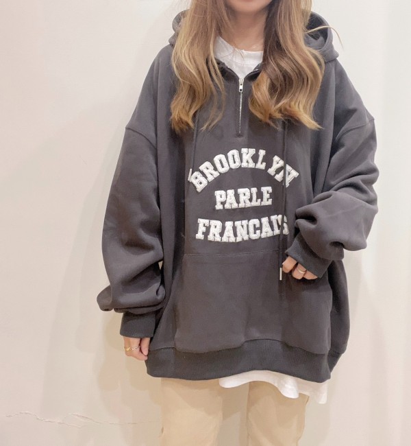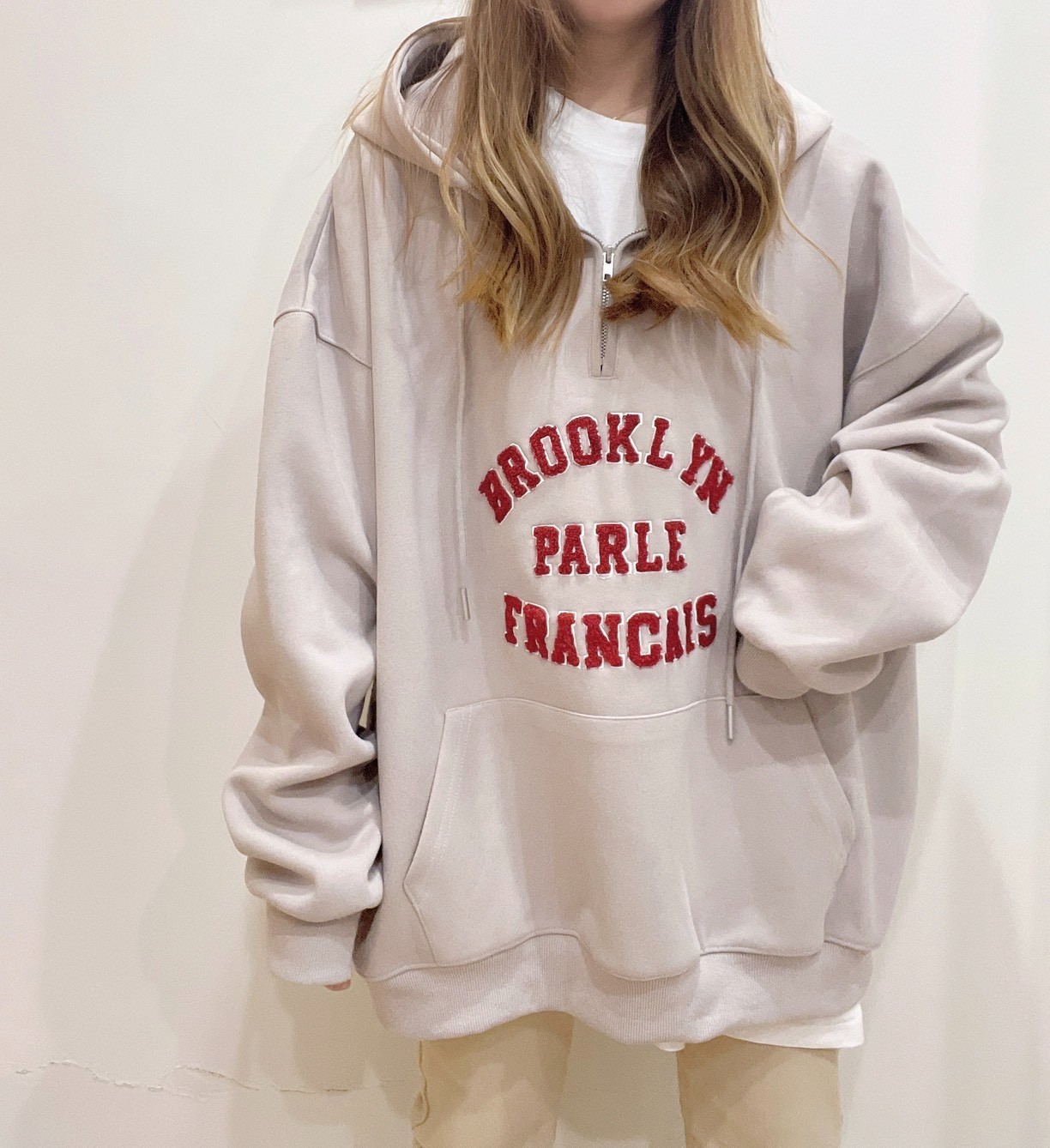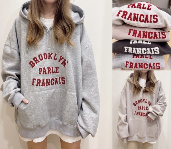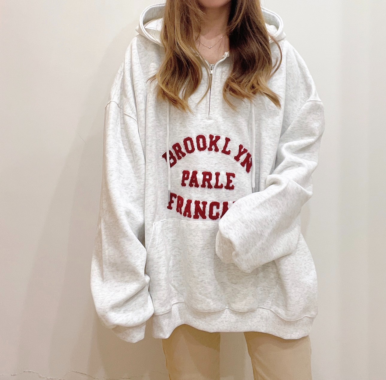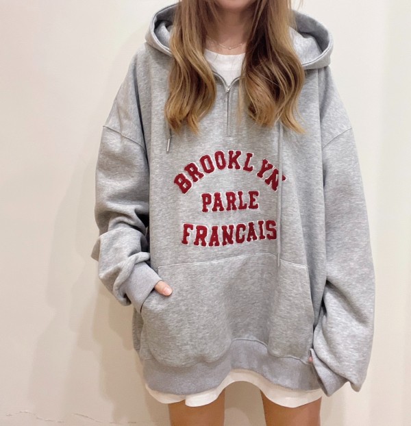 WSD13105女裝OVERSIZED字母BROOKLYN寬鬆大版拉鍊連帽T