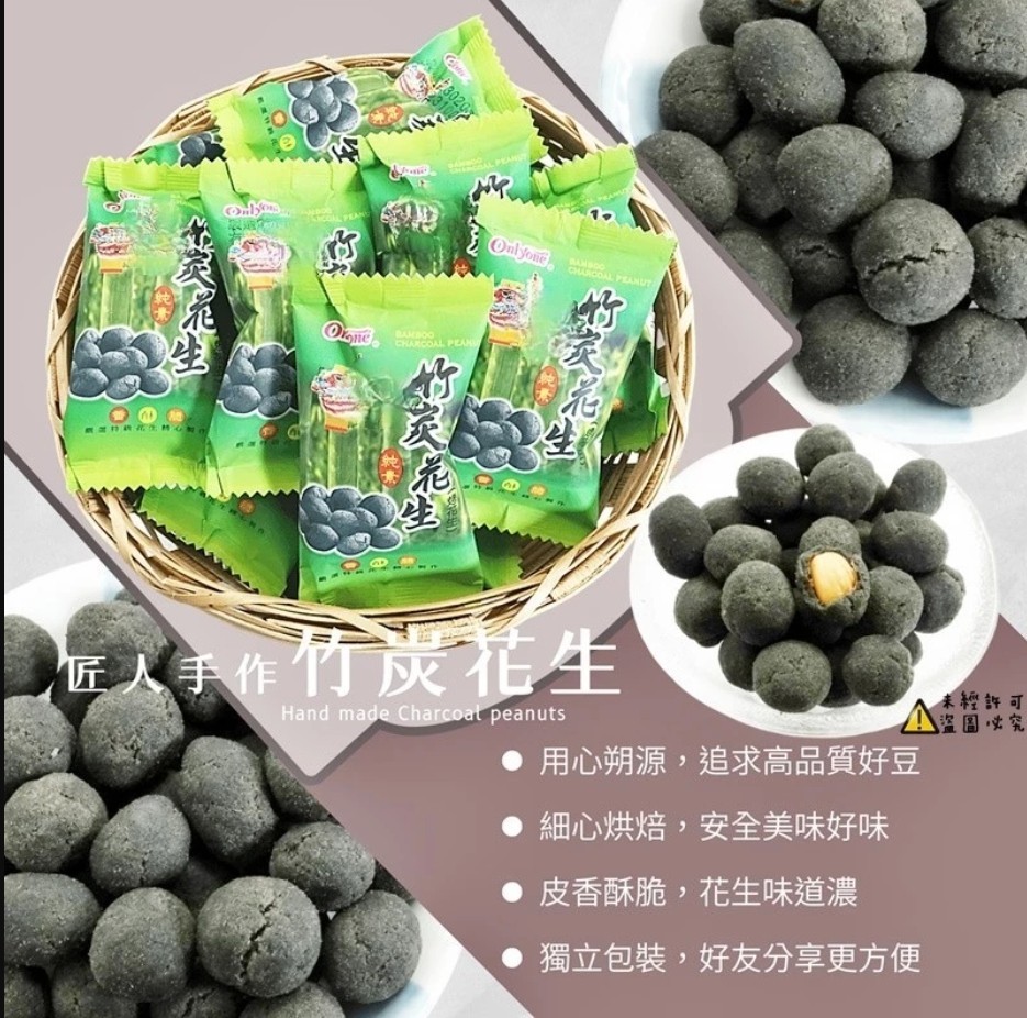加以研磨之竹炭粉,裹上台灣本土花生、