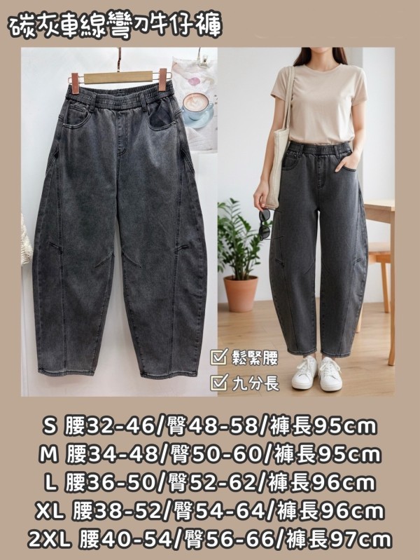 碳灰車線彎刀牛仔褲
