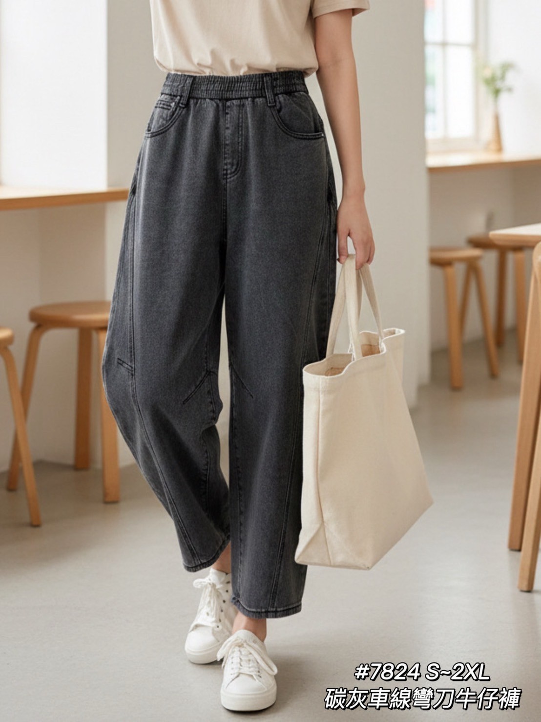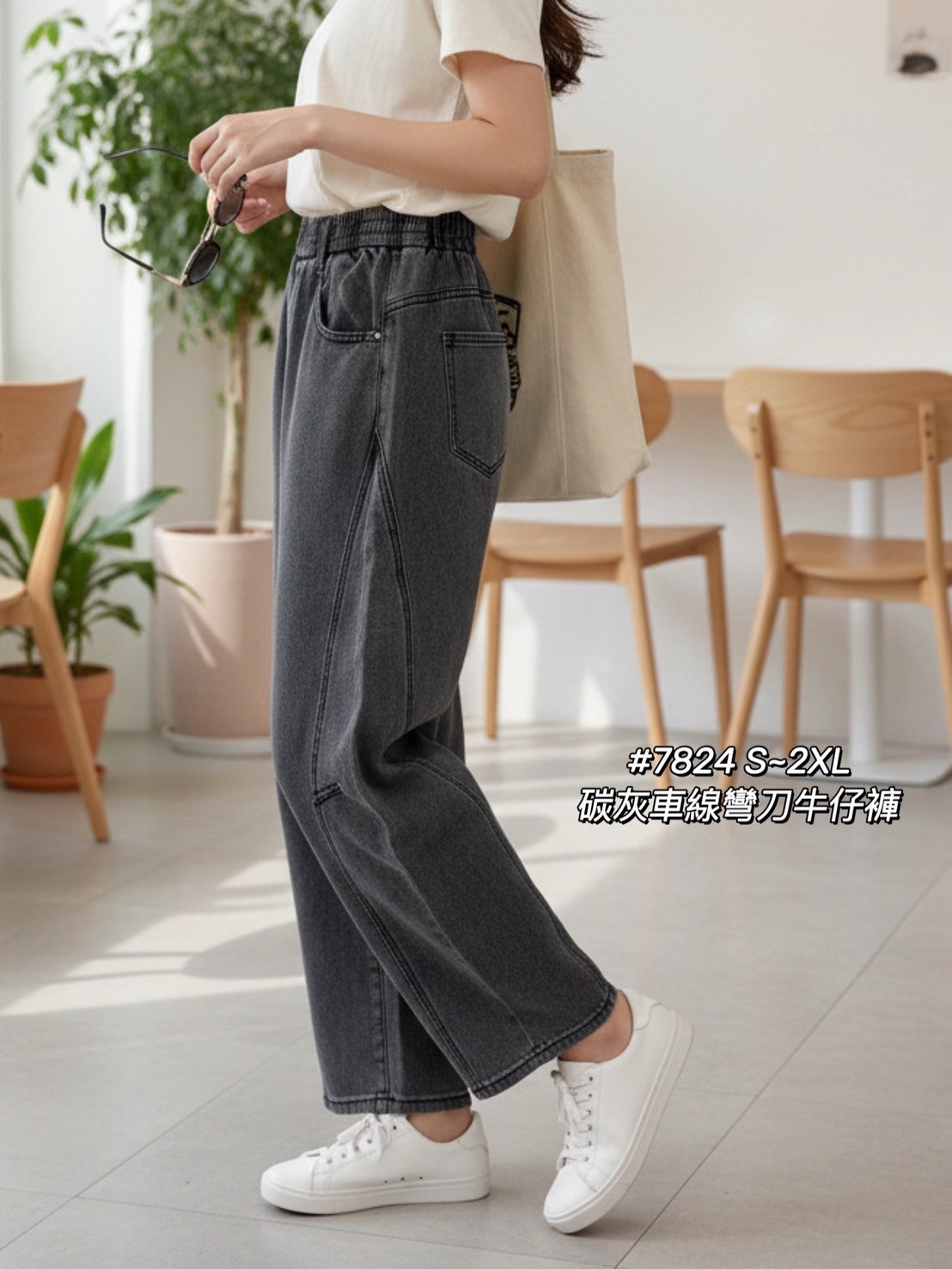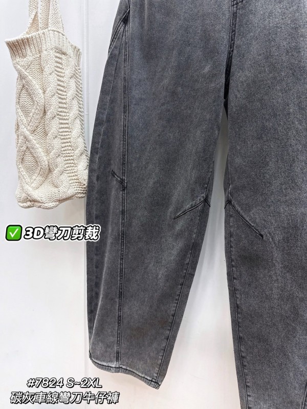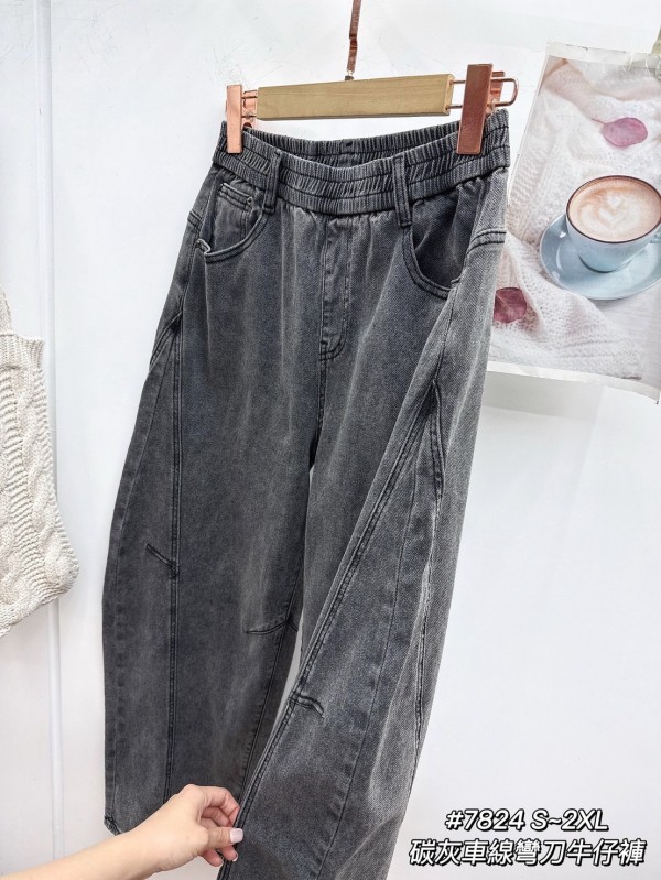 WGW7824女裝碳灰車線彎刀牛仔褲