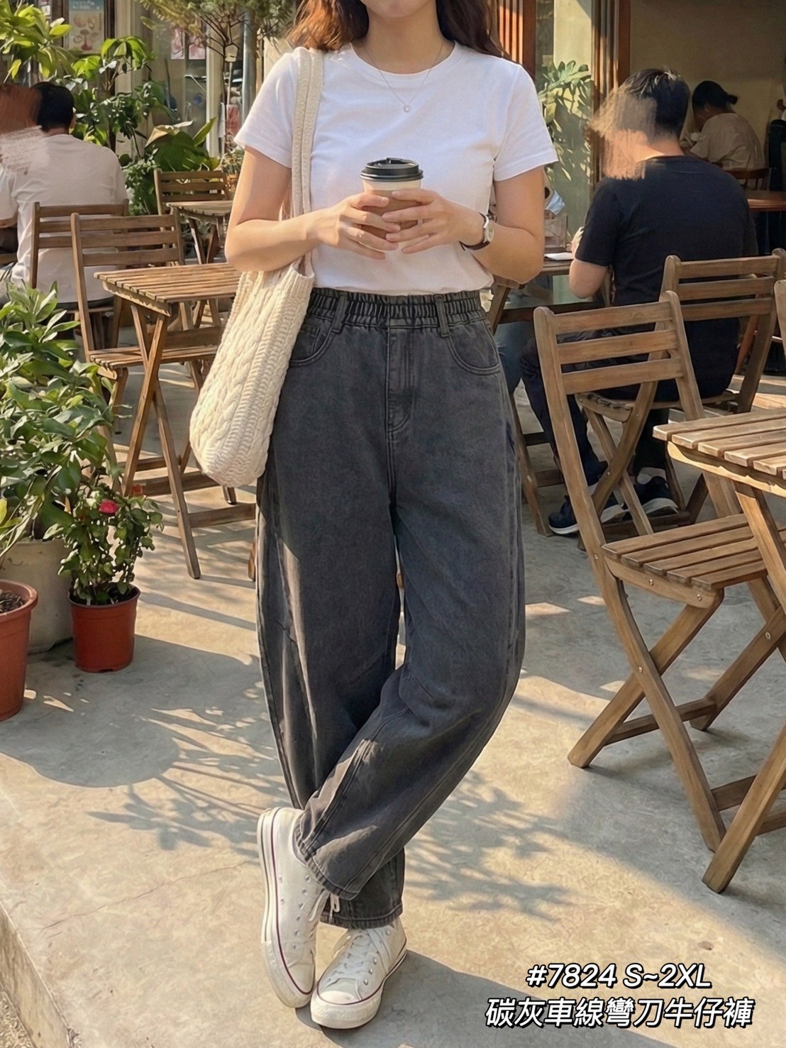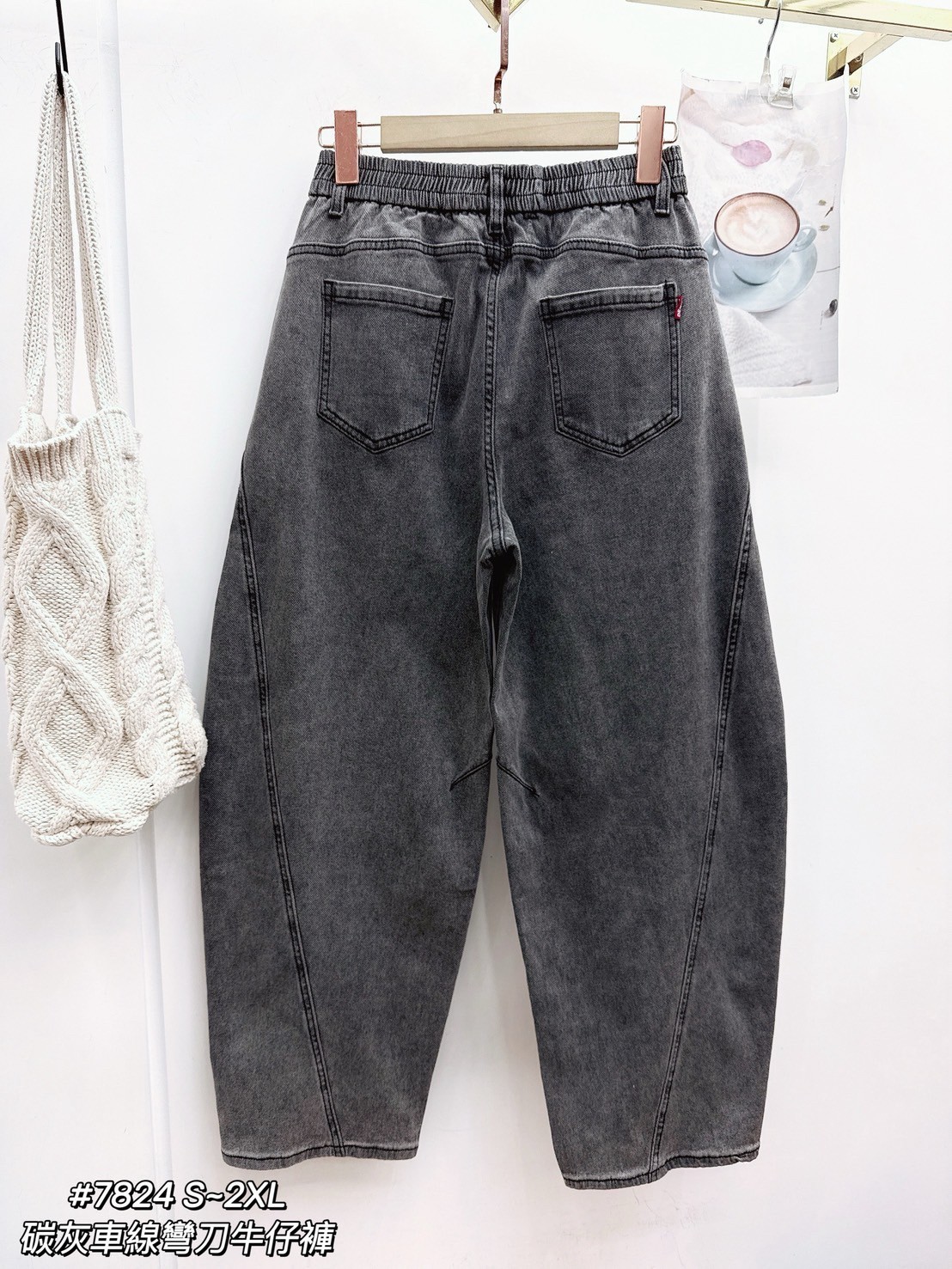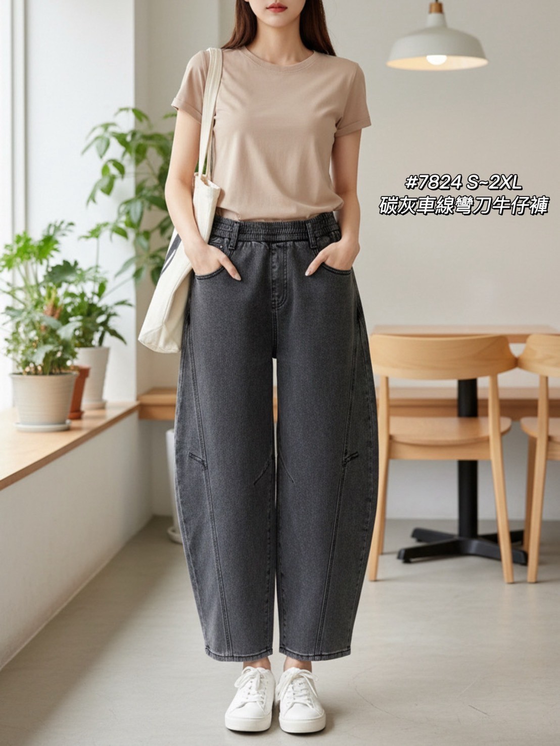 WGW7824女裝碳灰車線彎刀牛仔褲