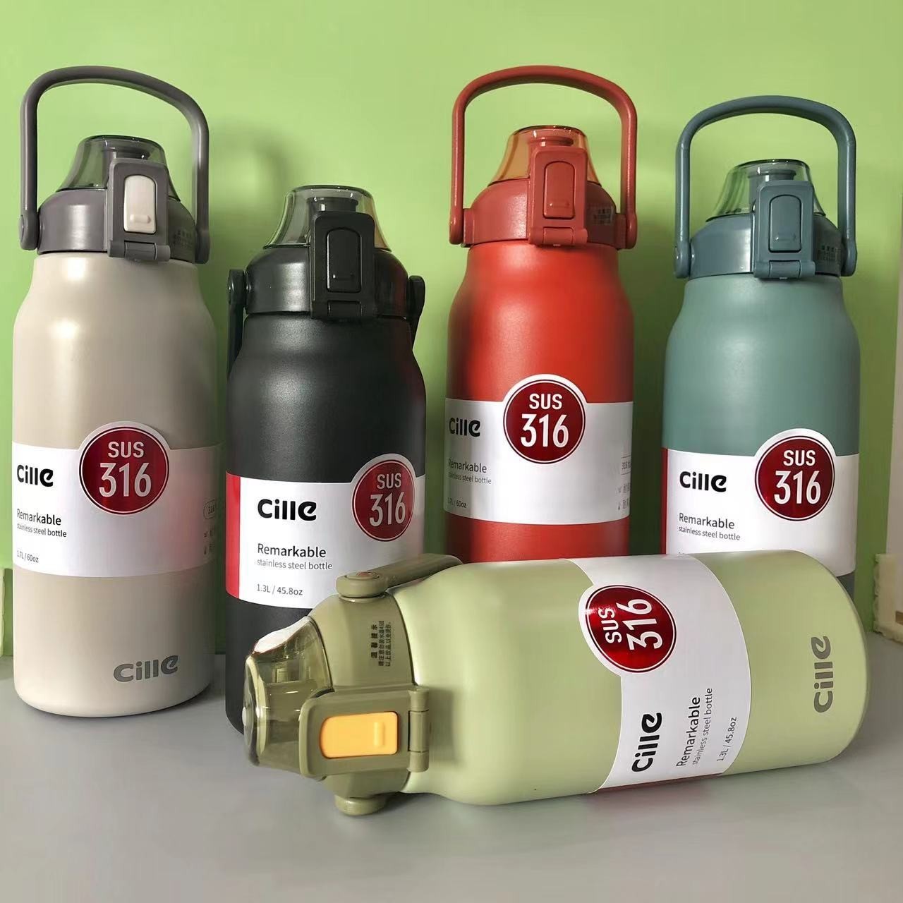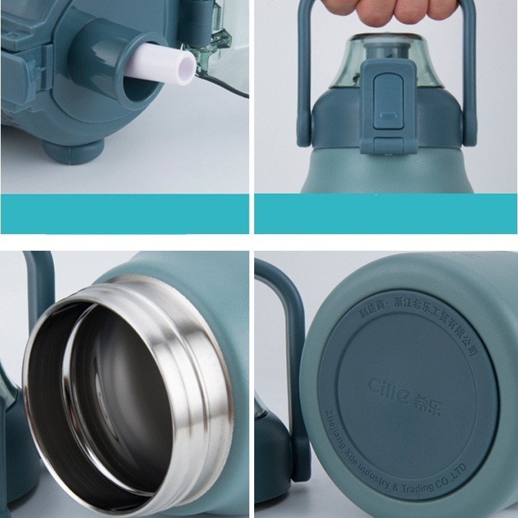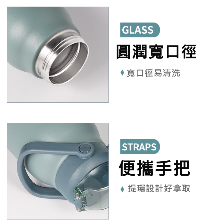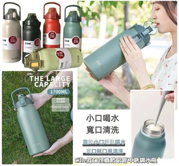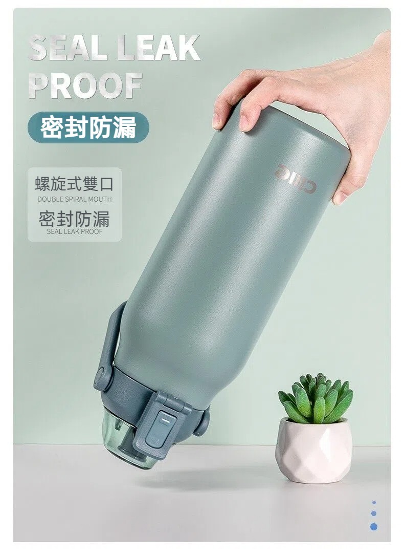 Cille寬口徑直飲吸管彈跳按壓不銹鋼水壺
