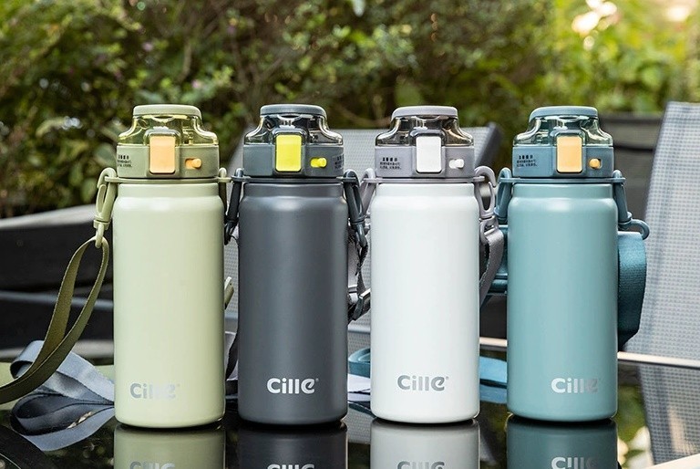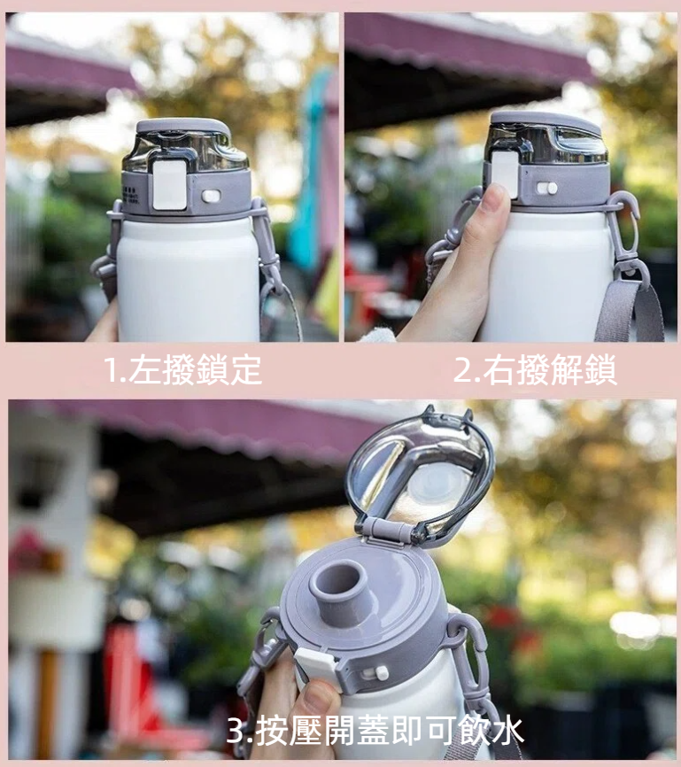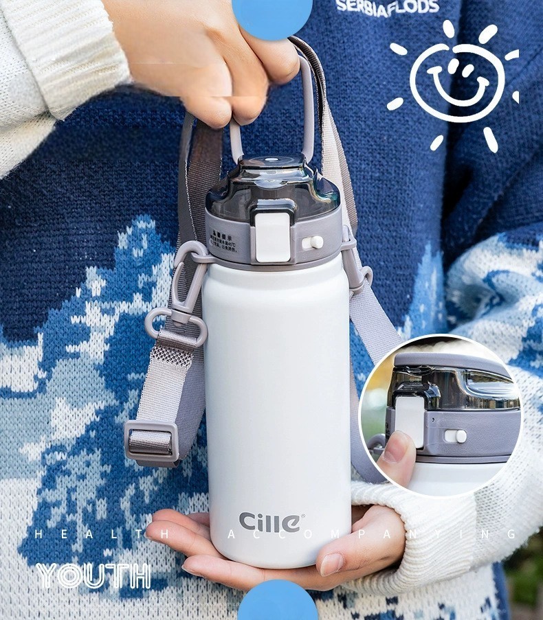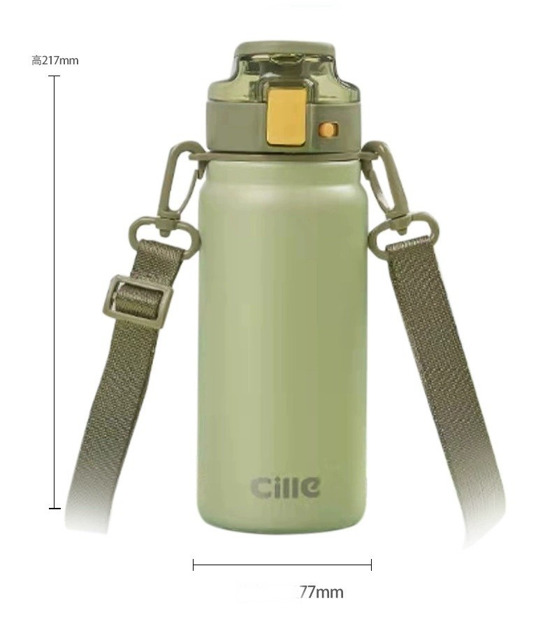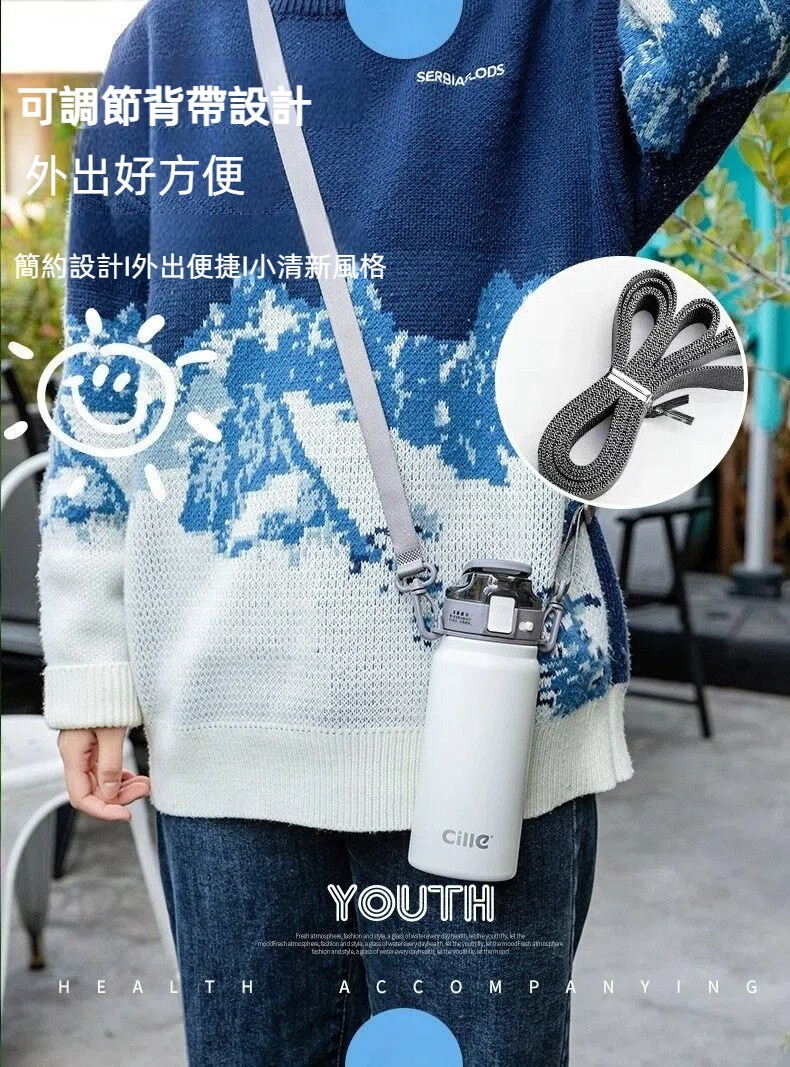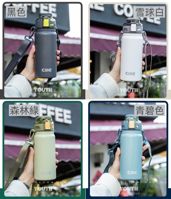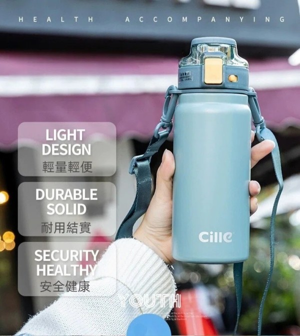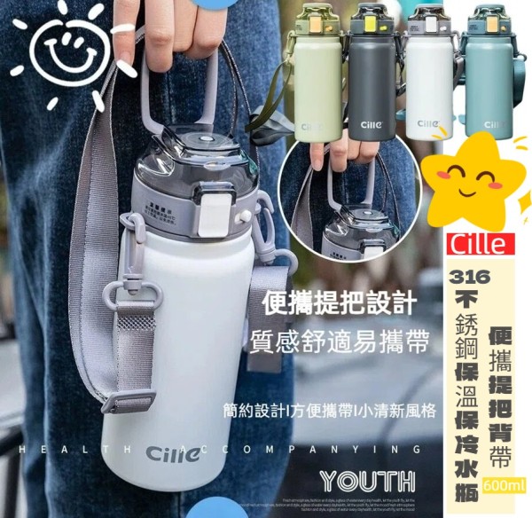 Cille便攜提把背帶316不銹鋼保溫保冷水壺600ml