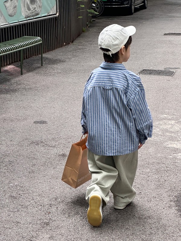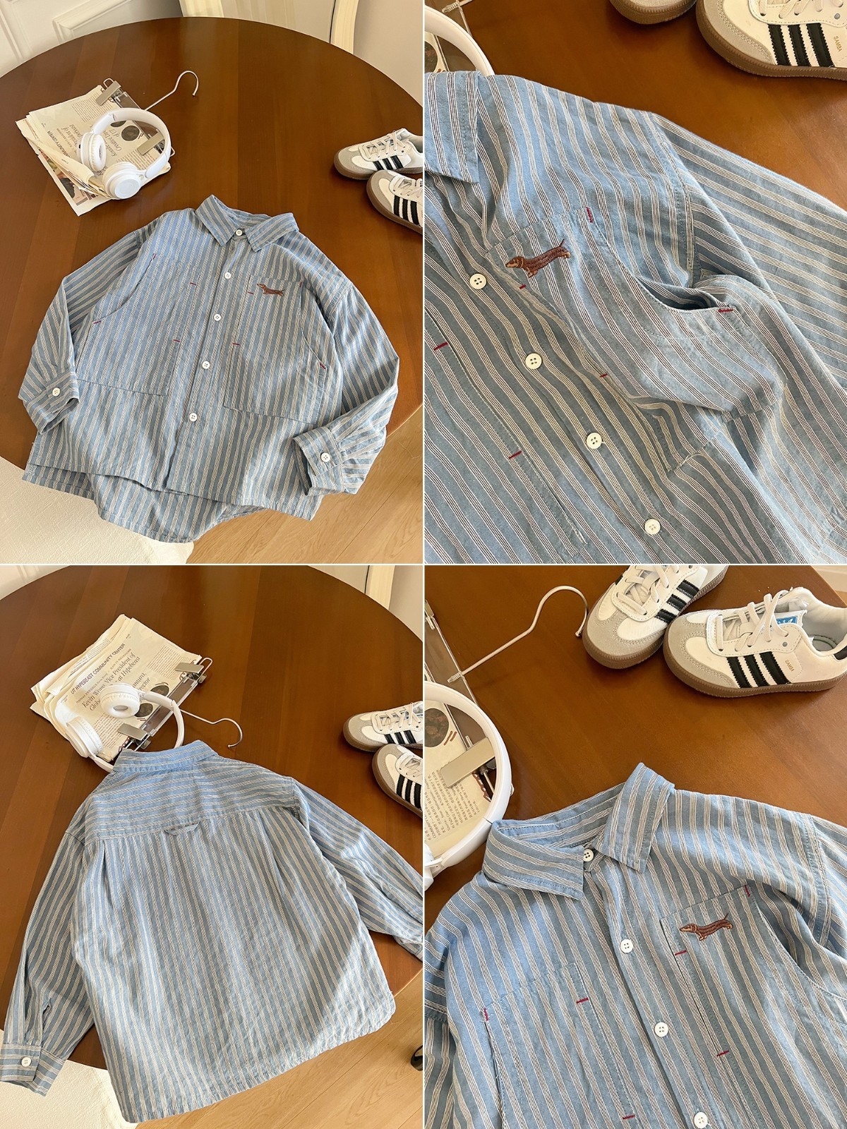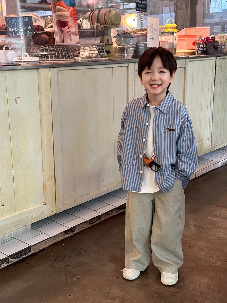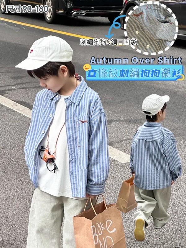 DMG24145童裝直條紋狗狗刺繡襯衫外套