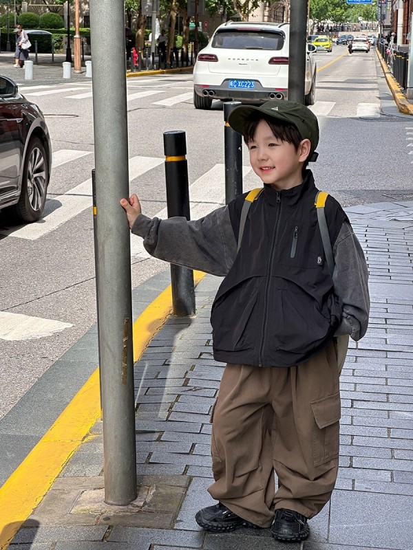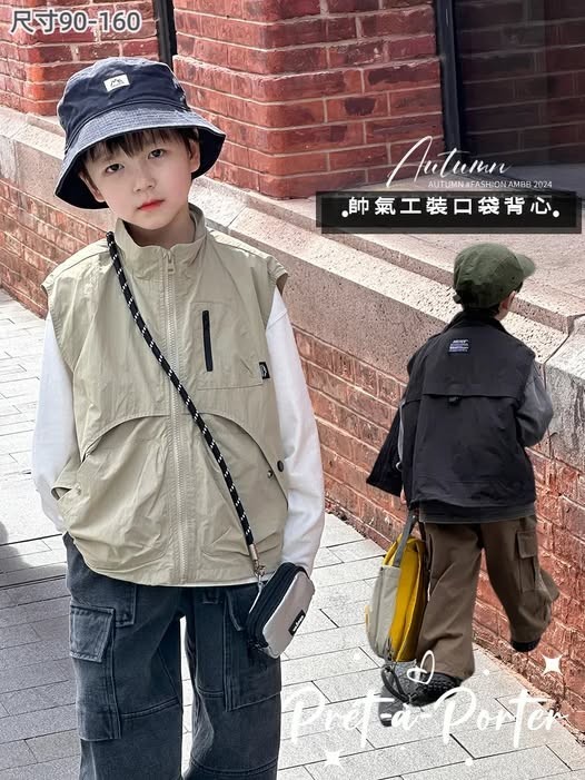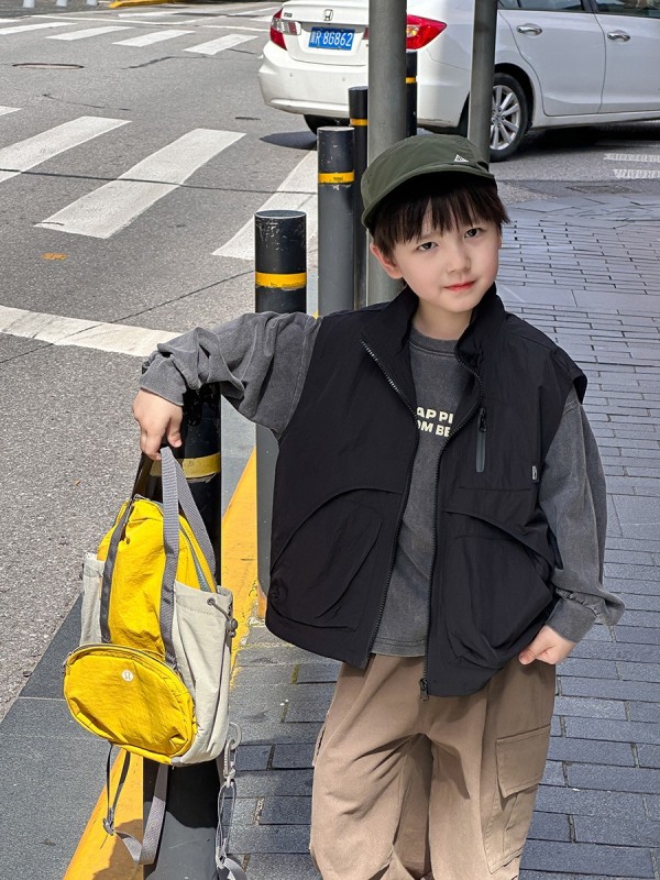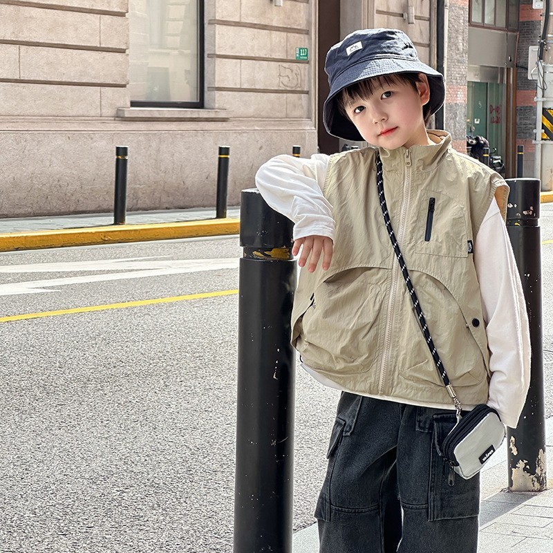 DMG24114童裝帥氣工裝口袋拉鍊背心