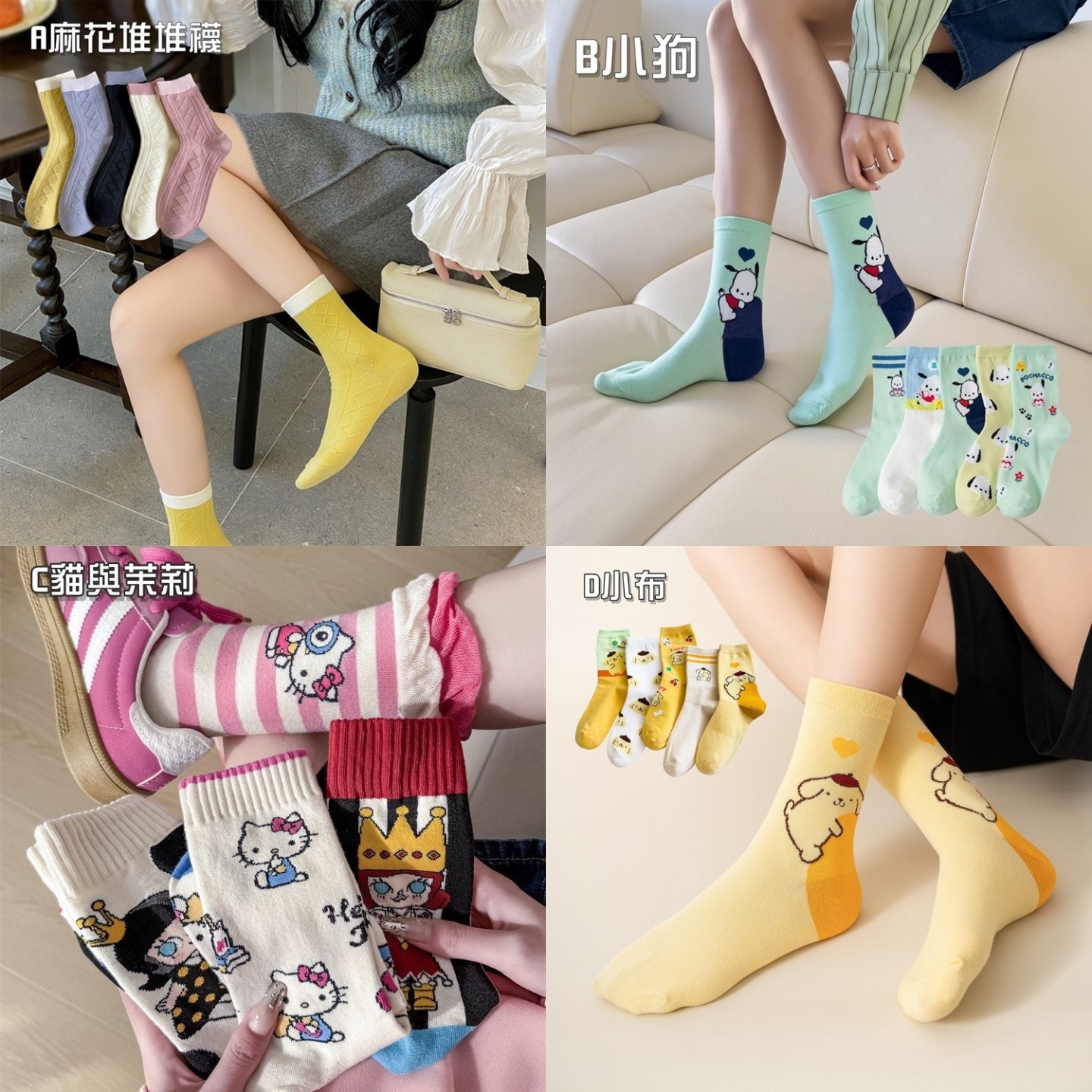可愛中筒襪襪(一組同款4雙)
