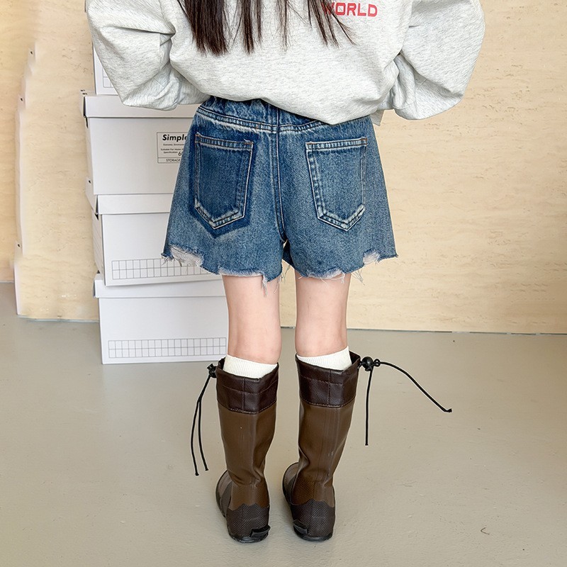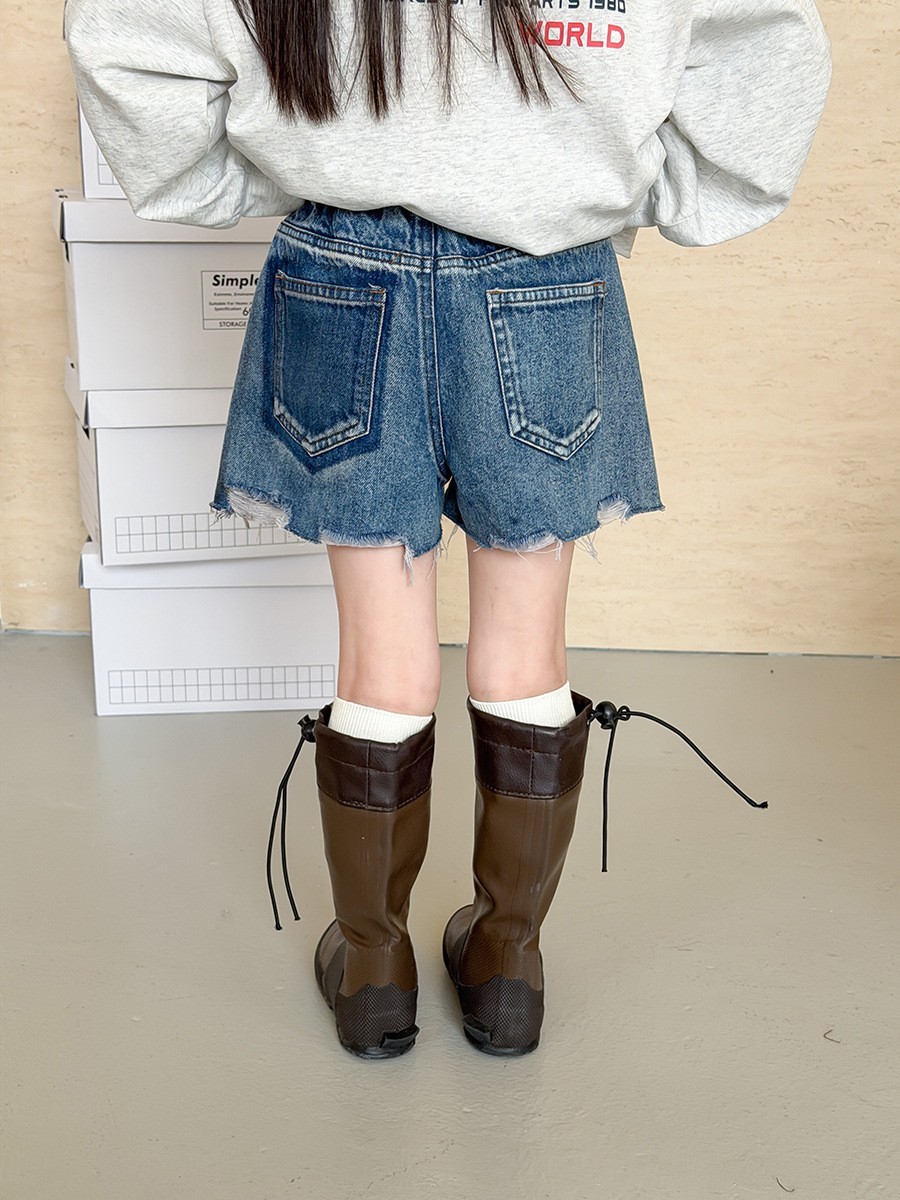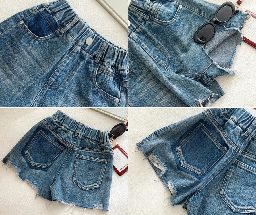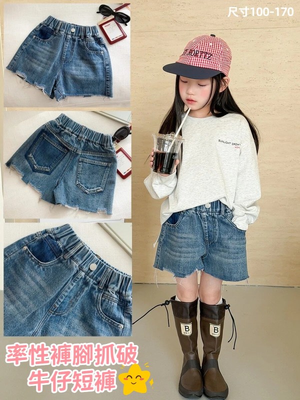DKG26057女童率性褲腳抓破牛仔短褲