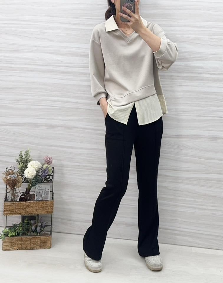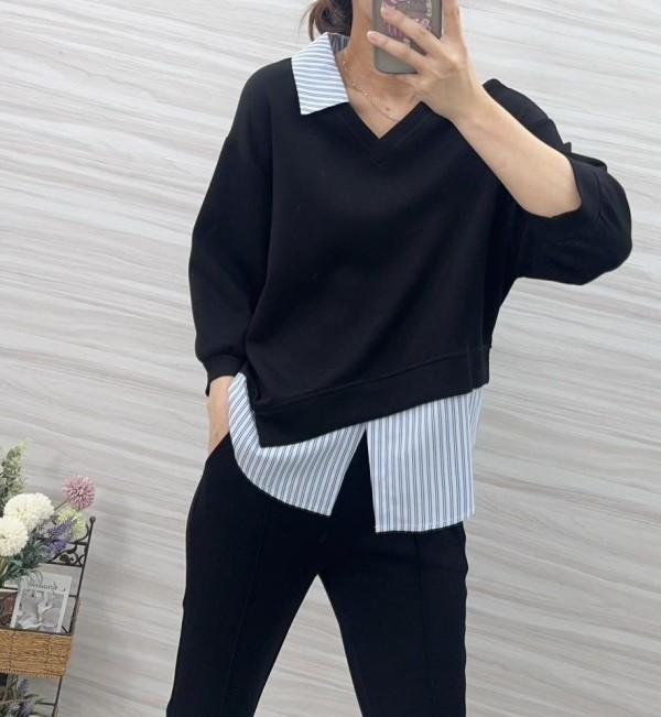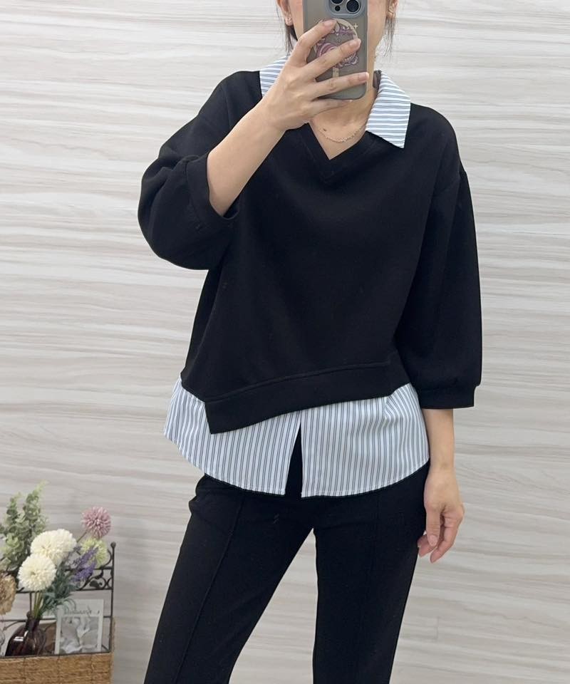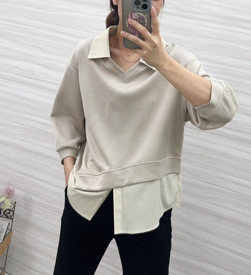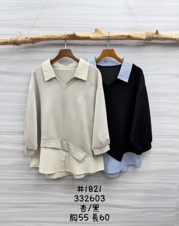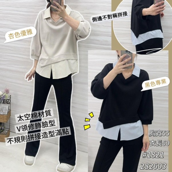 1821 「層次感穿搭,V領太空棉假兩件上衣」