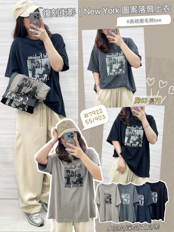 7922 New York 圖案高磅磨毛棉上衣