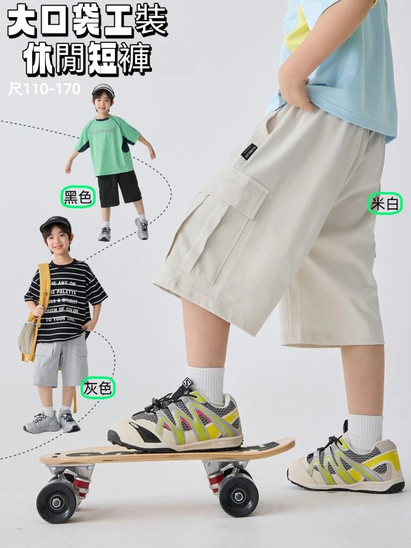 DHM608中大童大口袋工裝休閒短褲