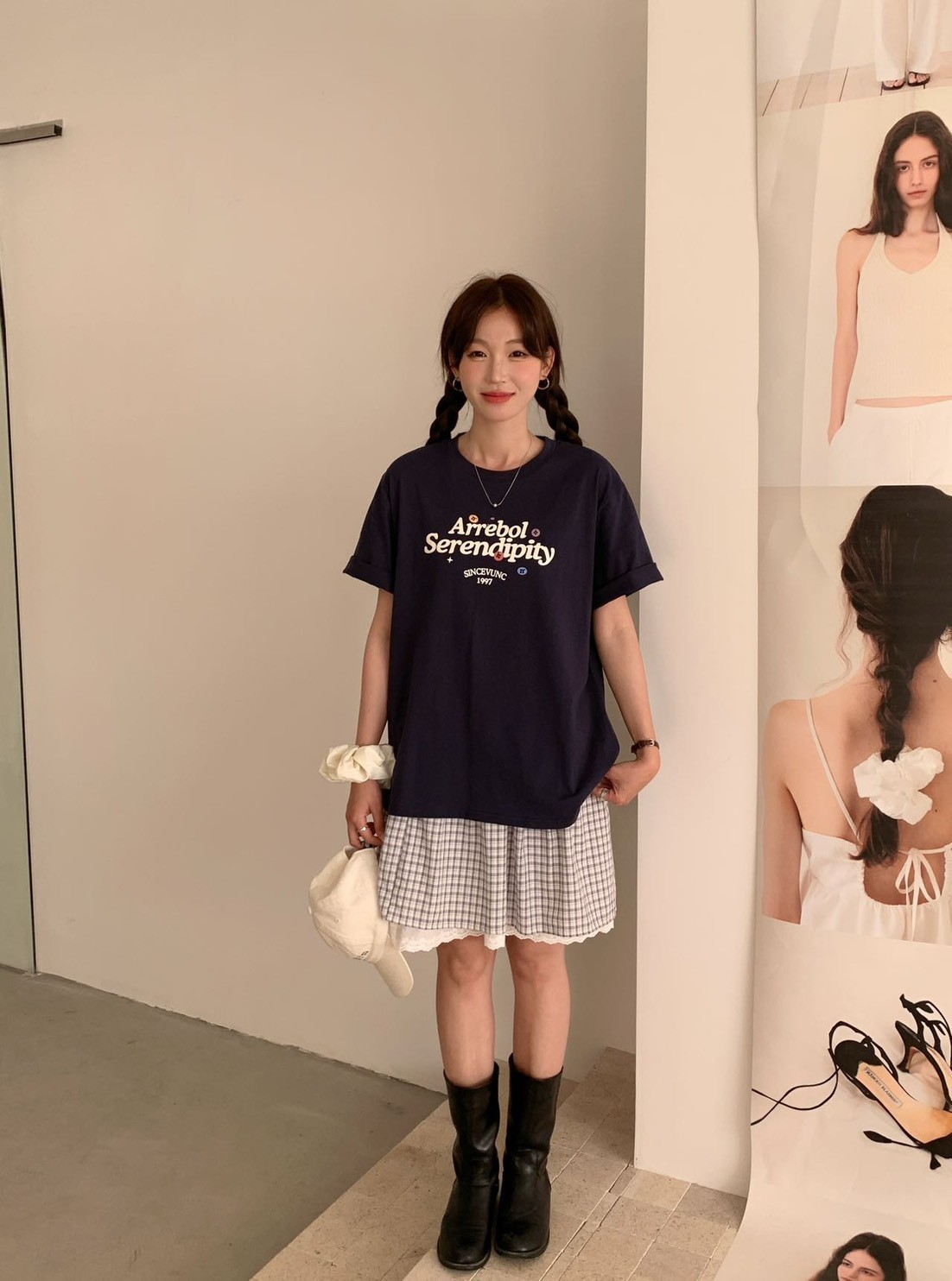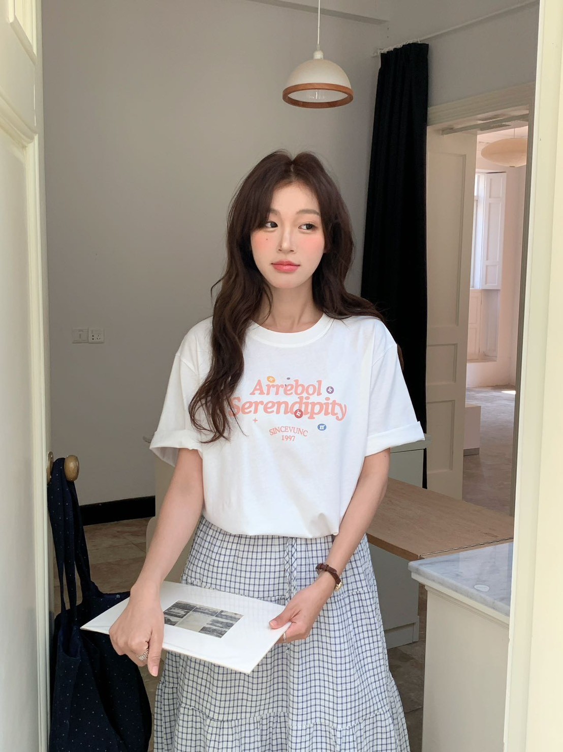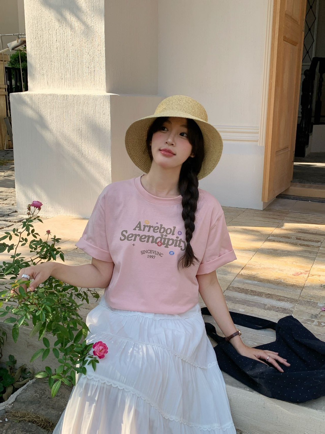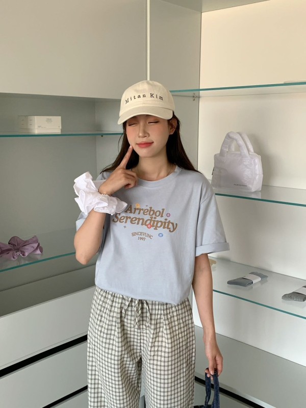 WSD6606女裝配色英文字Arrebol上衣冰爽棉上衣