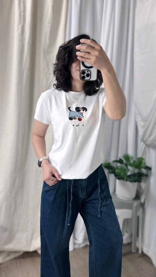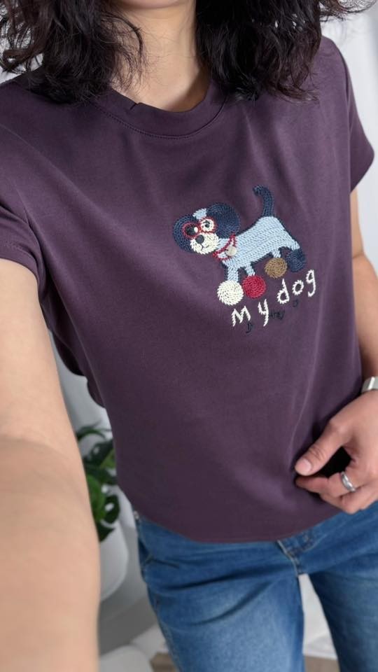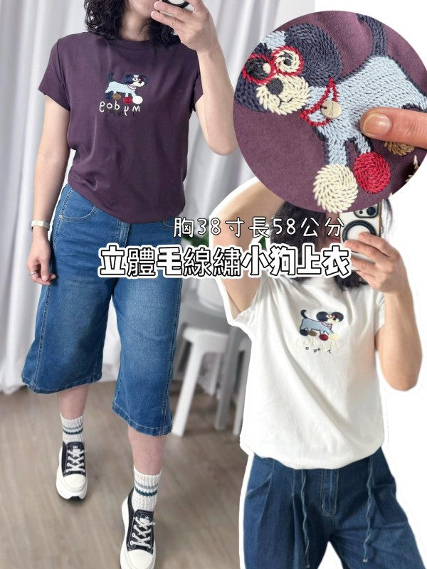 KSD2285女裝親膚萊卡棉毛線繡小狗上衣