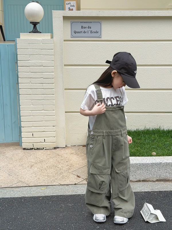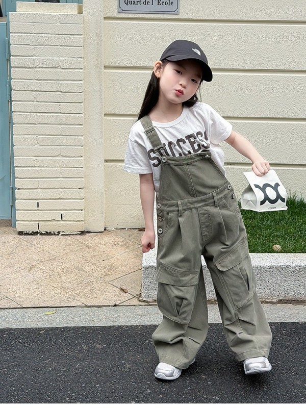 DKG26208大中小童韓系潮酷復古工裝風吊帶褲