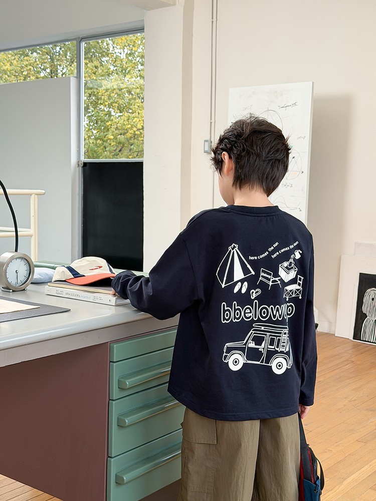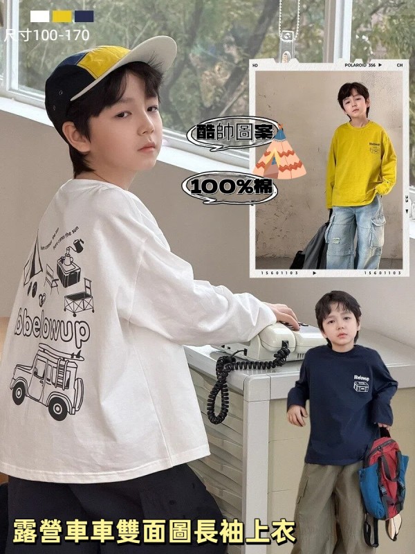 DMG26138童裝露營車車雙面圖長袖上衣