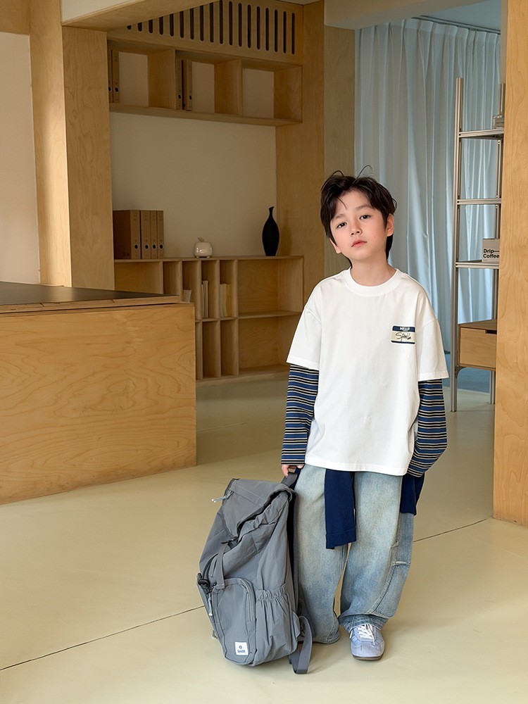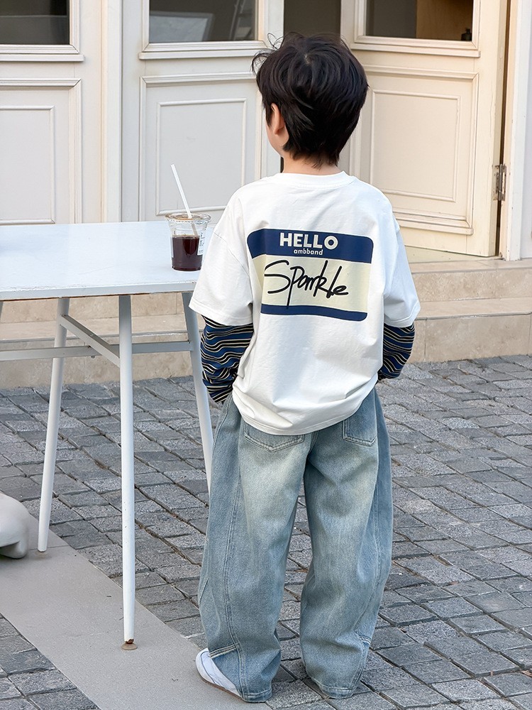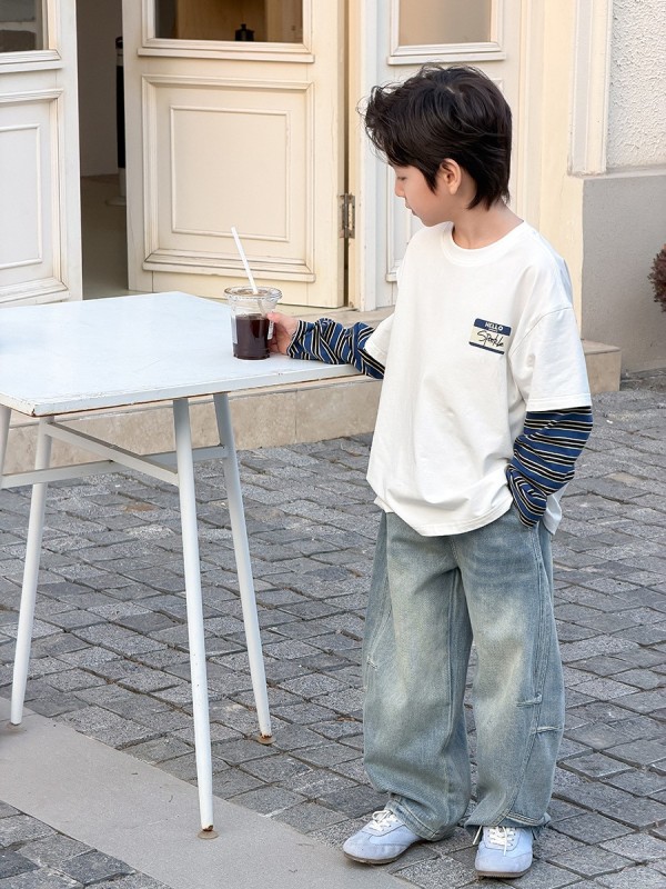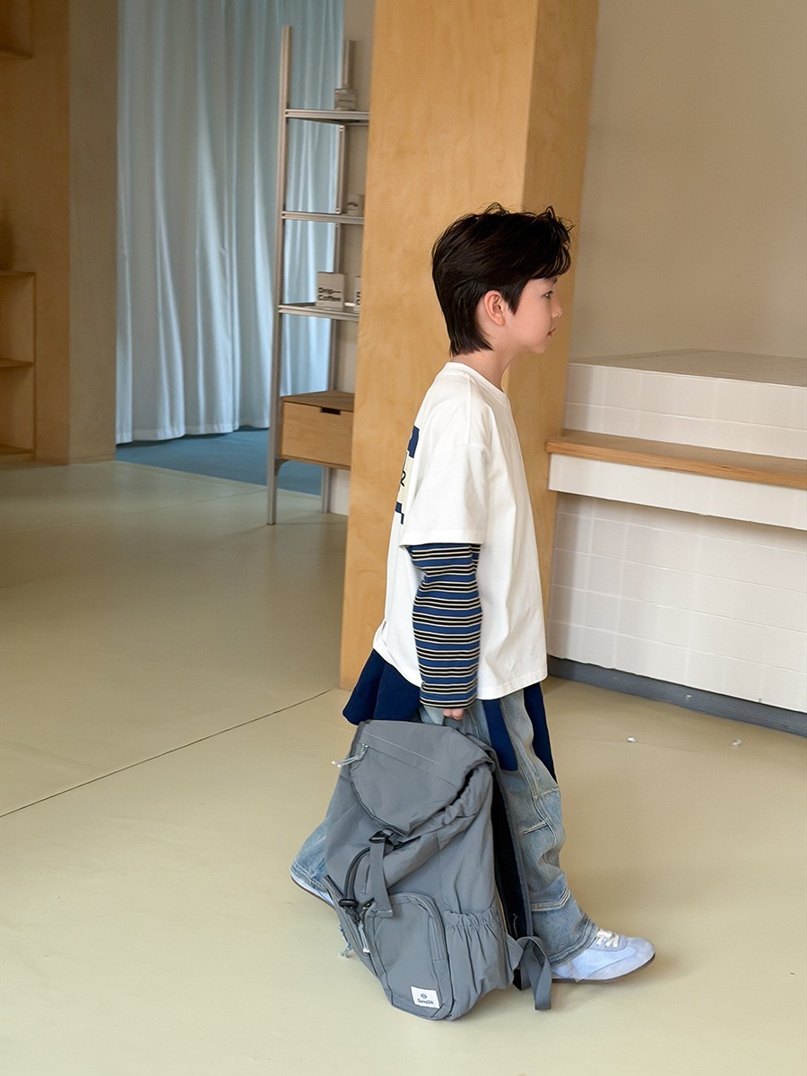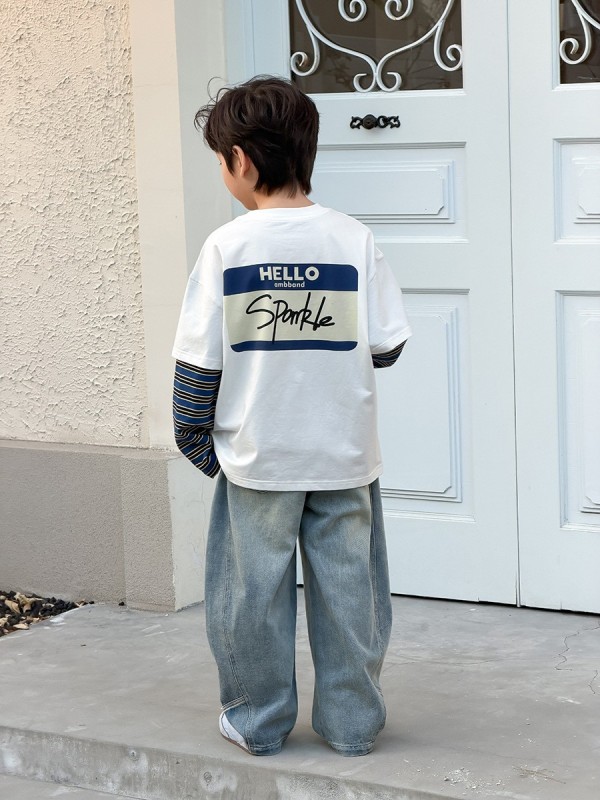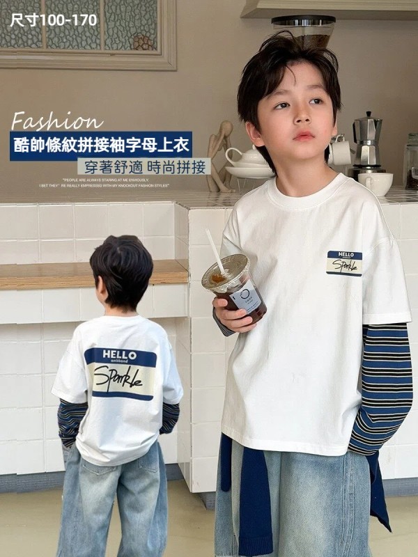 DMG26141童裝酷帥條紋拼接袖字母上衣