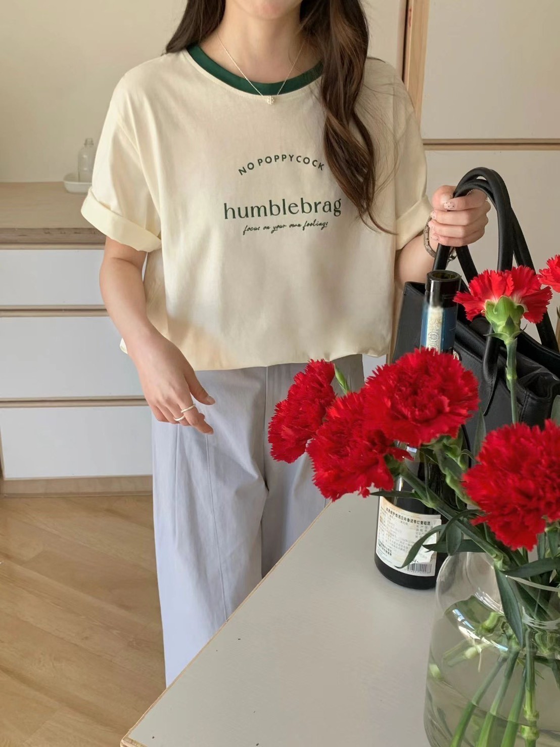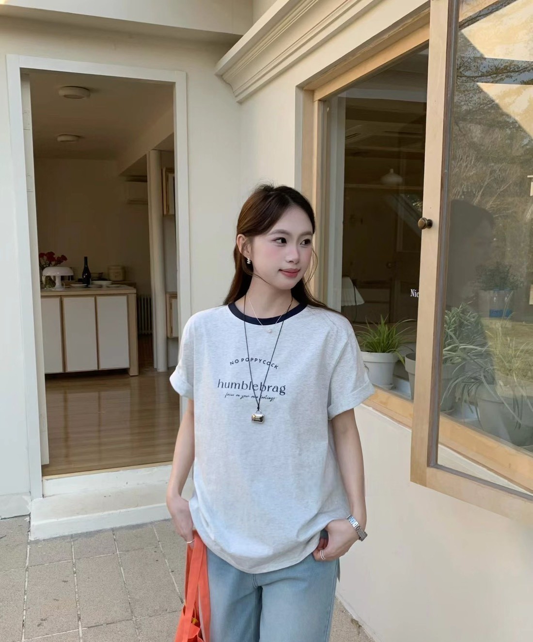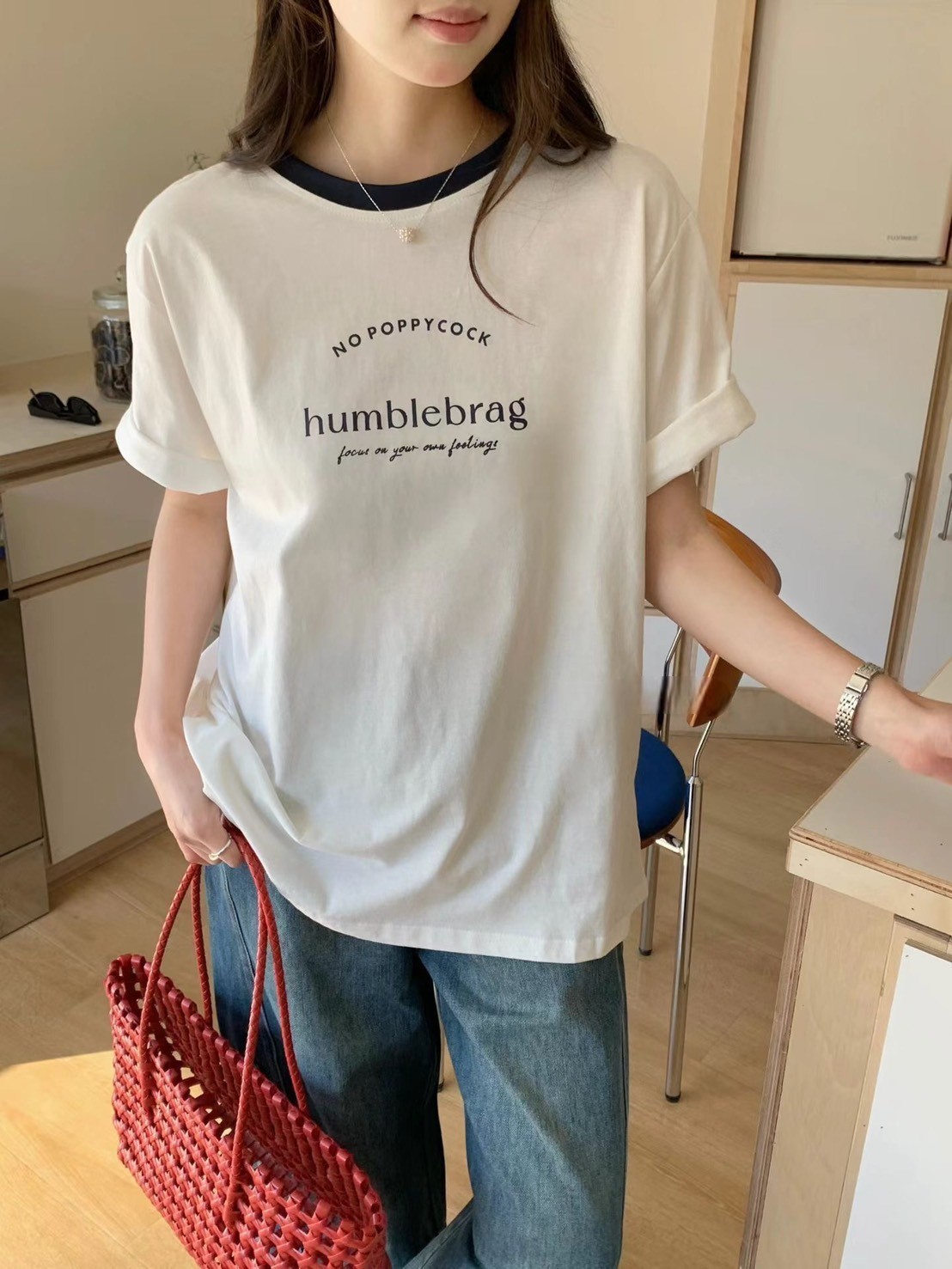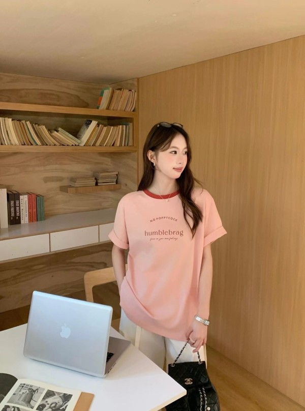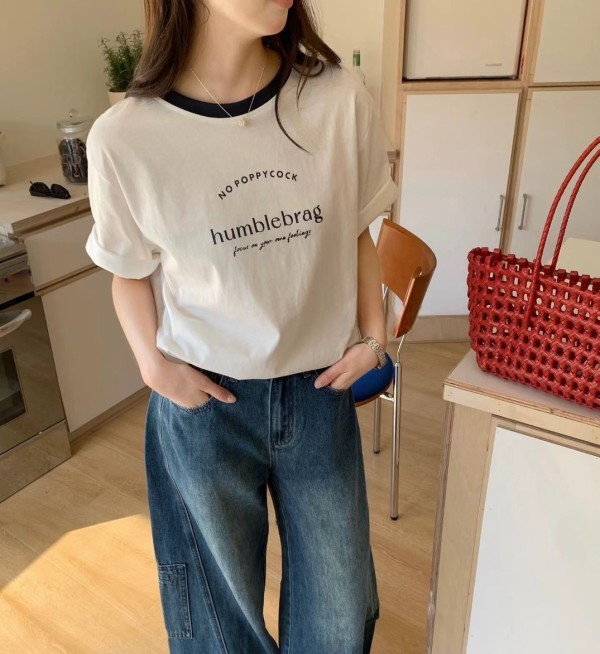WSD233701女裝滾邊領字母humblebrag上衣