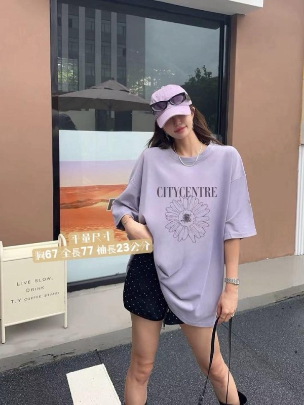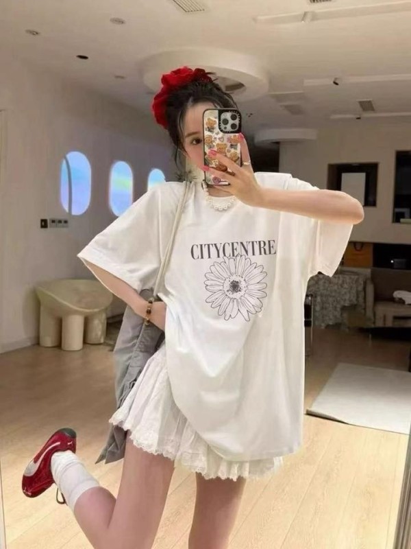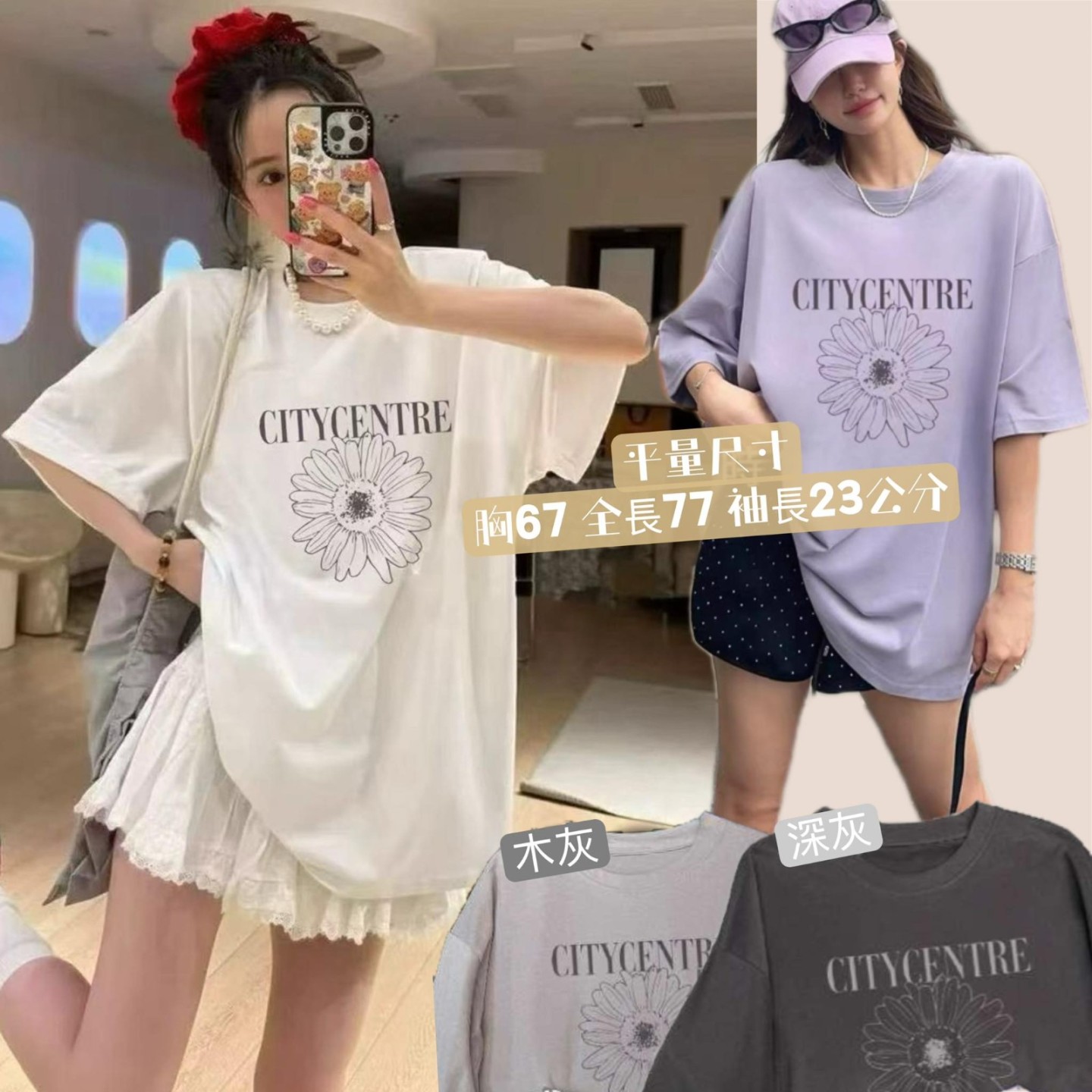 WAP2b7081F女裝夏日小雛菊短袖寬鬆棉T