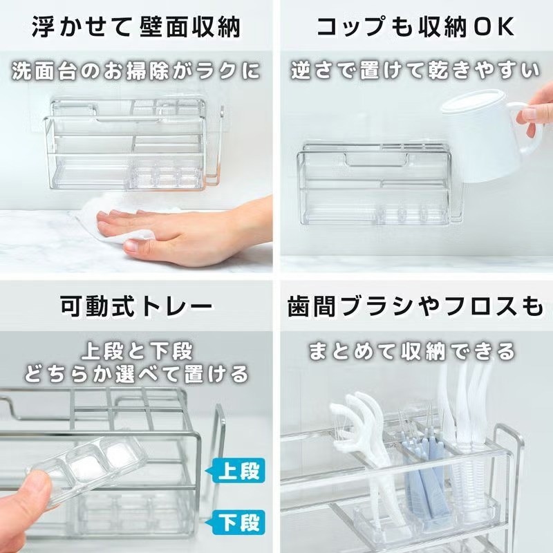 可上下移動托盤位置,以便於同時存放牙間刷、替換刷頭、牙線。